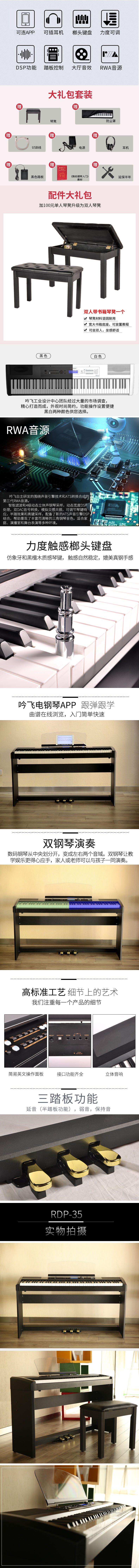 商品名称:Ringway吟飞电钢琴RDP-35 重锤88键便携智能数码电子钢琴家用教学