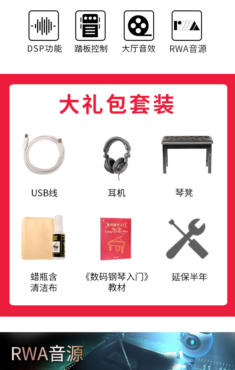 DG-30烤漆重锤键盘+琴凳大礼包