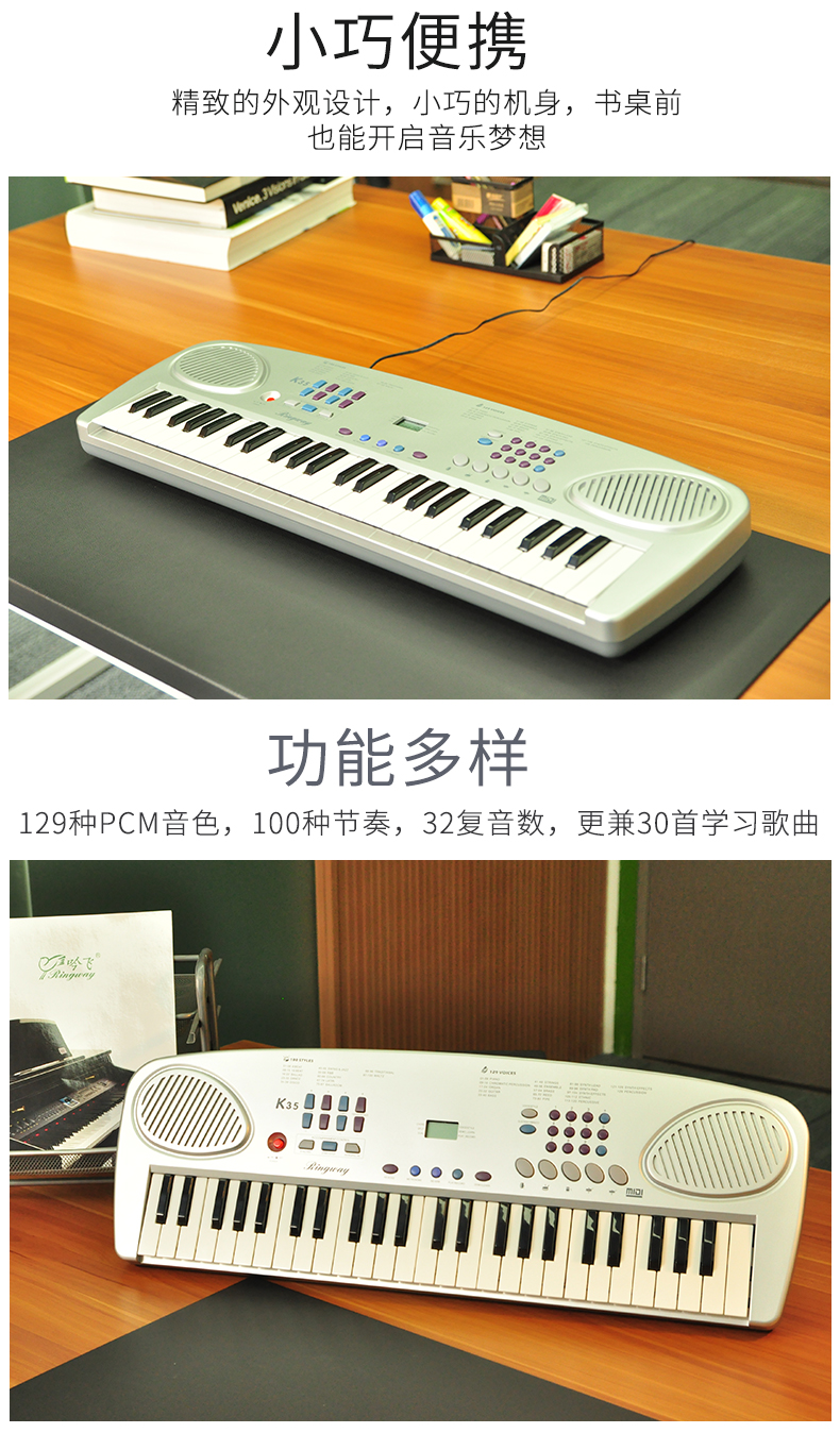 商品名称:Ringway吟飞电子琴K35初学者电子琴成人入门儿童幼师49键力度琴键