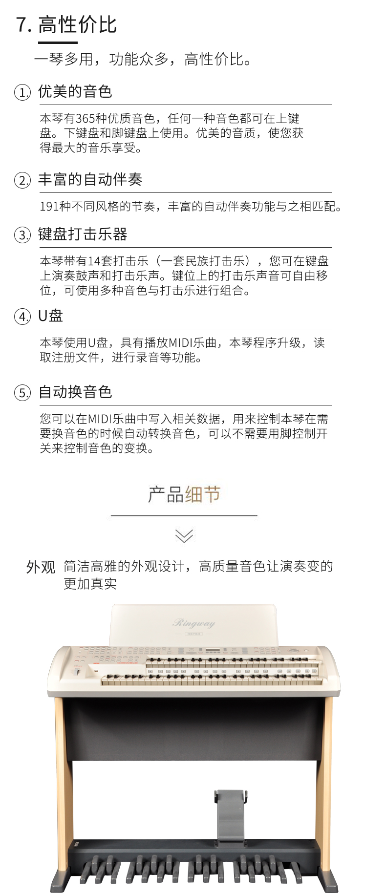 商品名称:Ringway吟飞电子管风琴RS760双排键成人专业演奏儿童电子数码钢琴