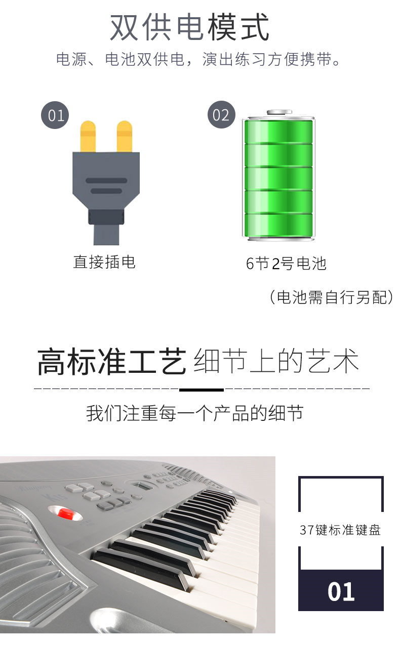 商品名称:Ringway吟飞电子琴K15初学者电子琴家用入门儿童幼师37键力度琴键