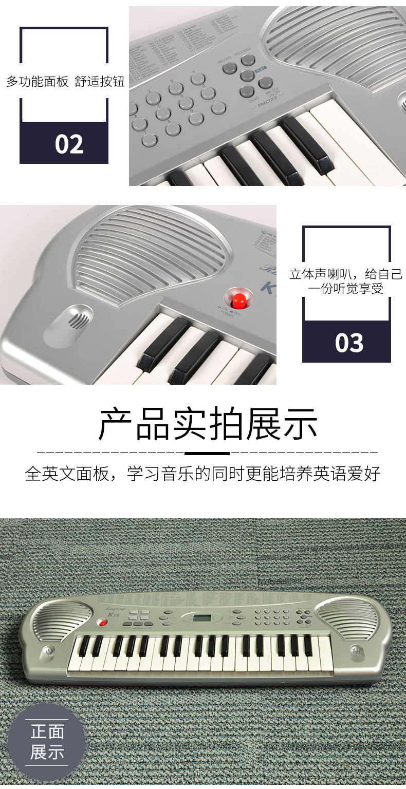 Ringway吟飞电子琴K15初学者电子琴家用入门儿童幼师37键力度琴键