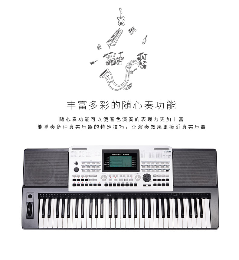 商品名称:美得理A800成人老人儿童初学者考级专业教学多功能智能61键电子琴