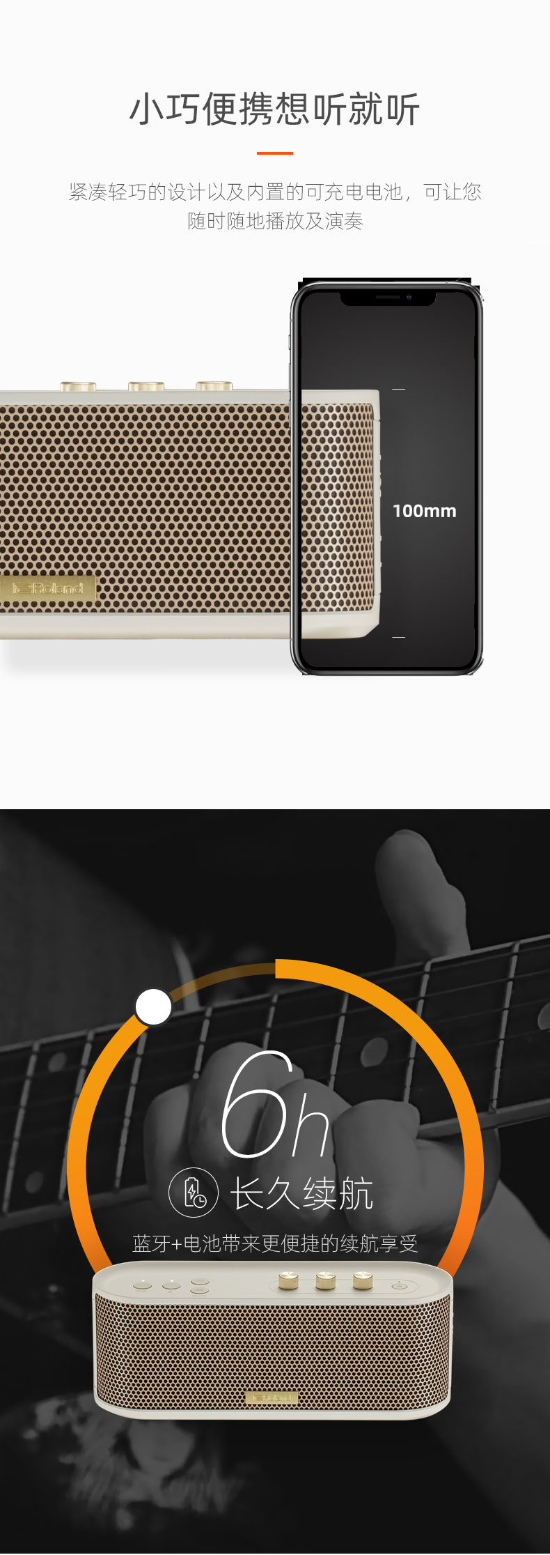 商品名称:Roland罗兰BTM-1便携蓝牙音响娱乐电木吉他弹唱音响电吹管音箱