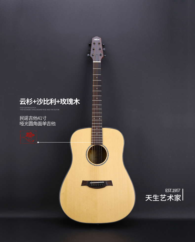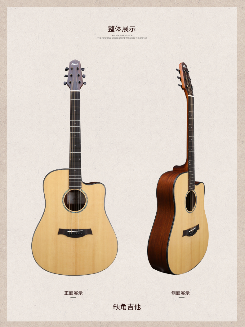 红棉吉他单板民谣吉他41寸面单缺角电箱男木吉他初学者入门学生女