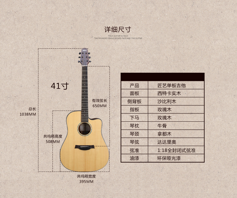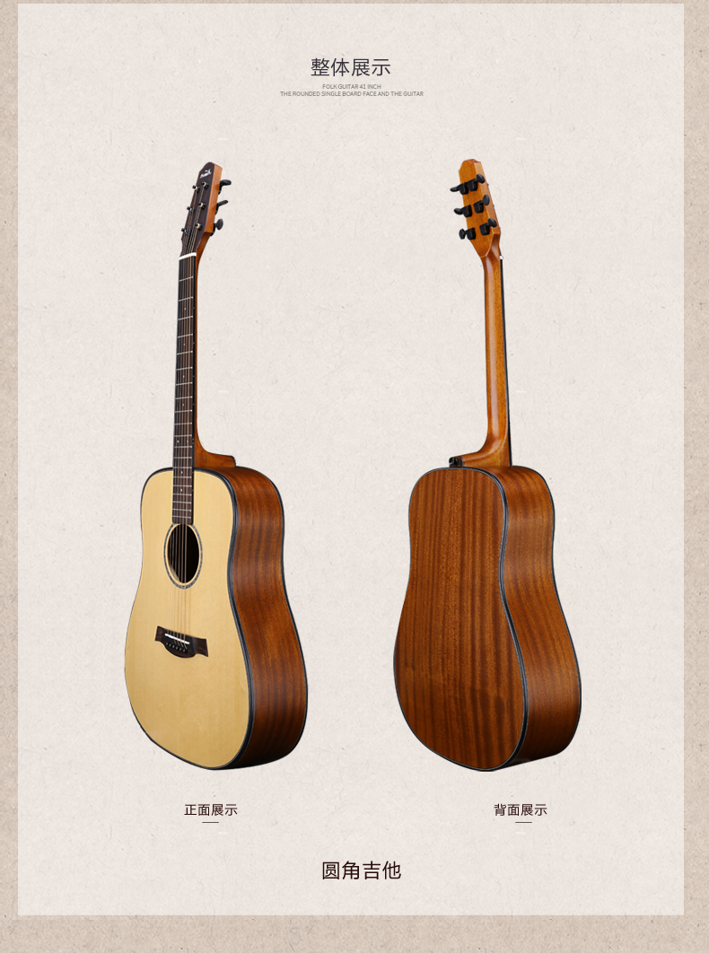 商品名称:红棉吉他单板民谣吉他41寸面单缺角电箱男木吉他初学者入门学生女