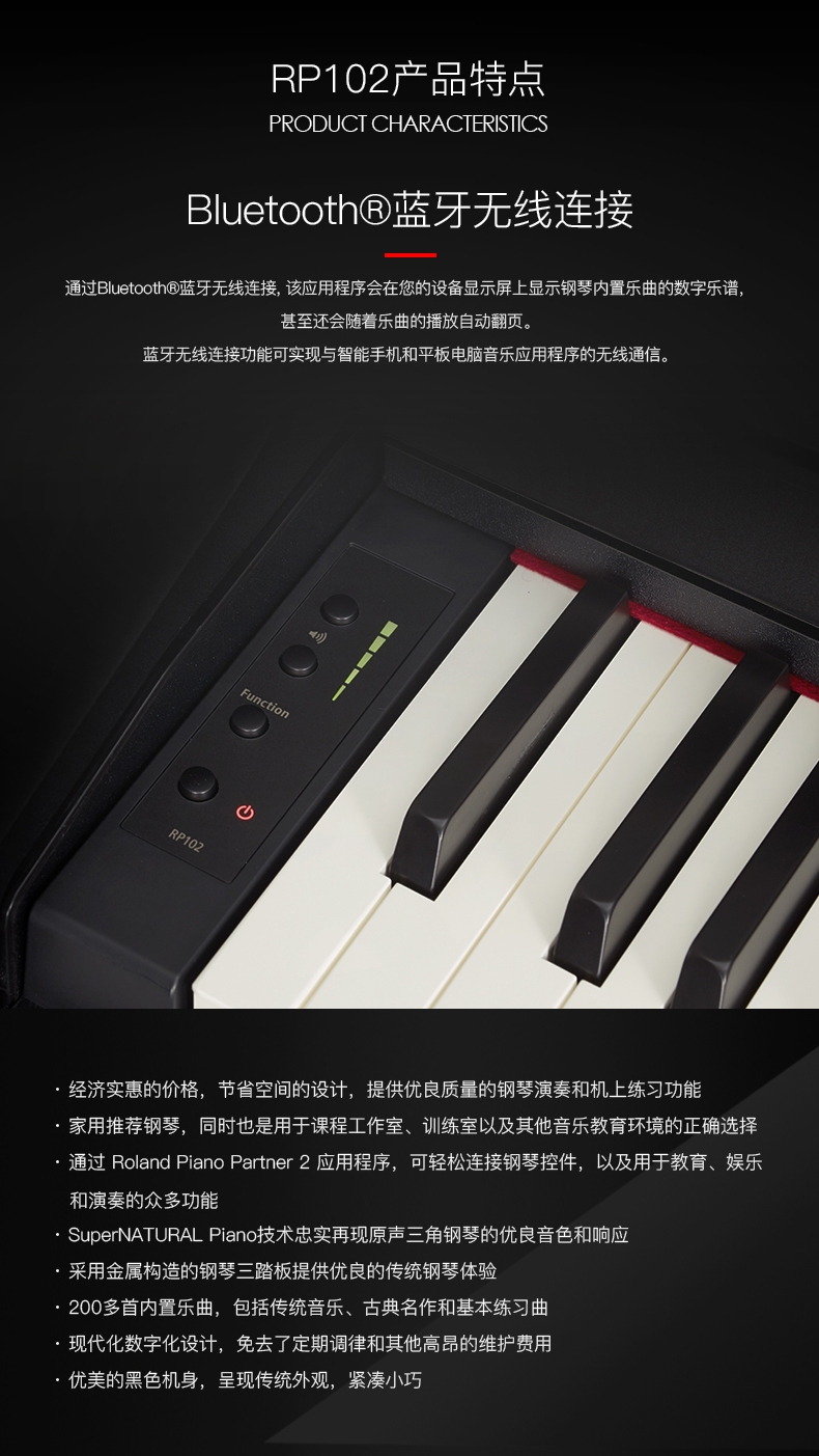 商品名称:Roland罗兰RP102立式电钢琴88键重锤三踏板成人初学家用专业钢琴