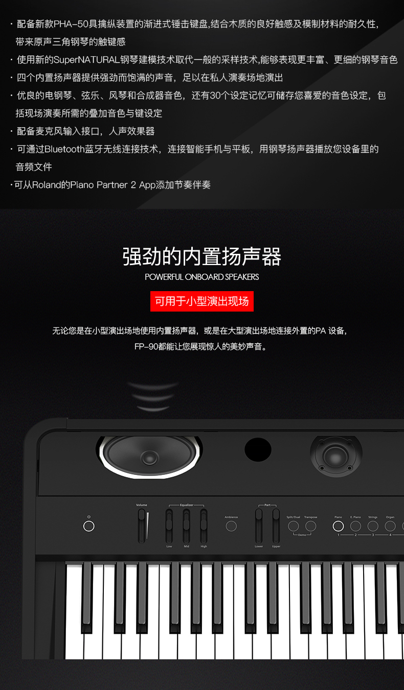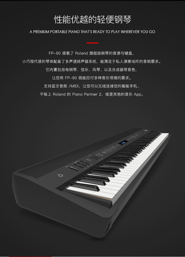 商品名称:Roland罗兰 FP-90 电钢琴88键重锤专业考级数码钢琴便携日本原装