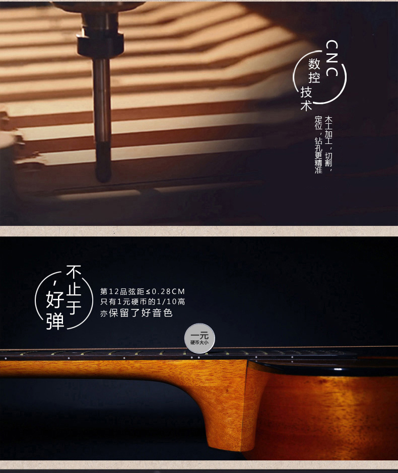 红棉吉他 民谣木吉他36寸单板旅行吉他初学者面单学生女电箱男