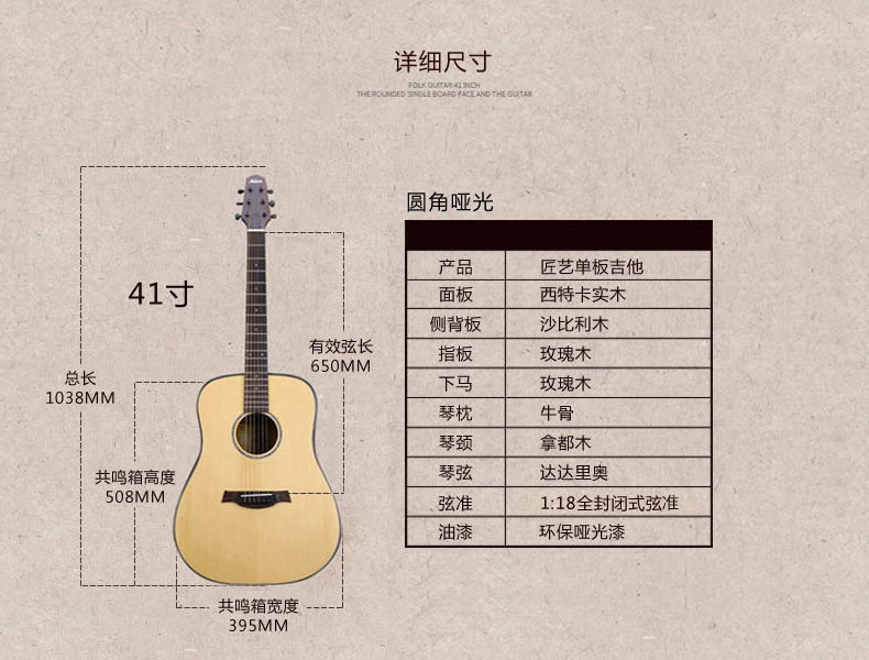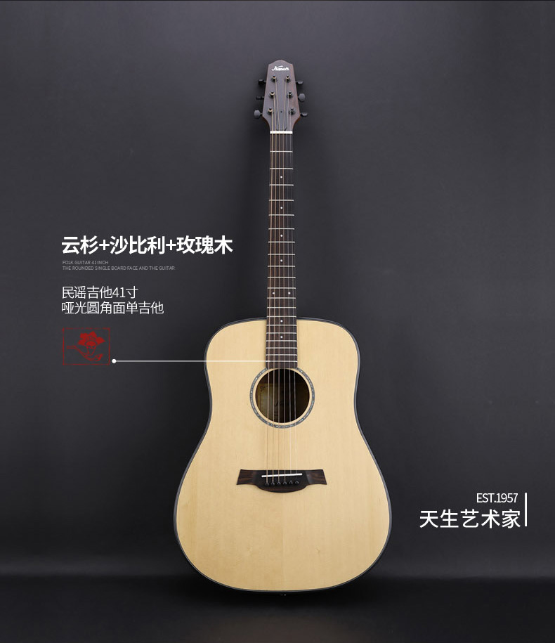 商品名称:kapok红棉正品民谣吉他41寸单板吉它初学者吉他练习面单木吉他