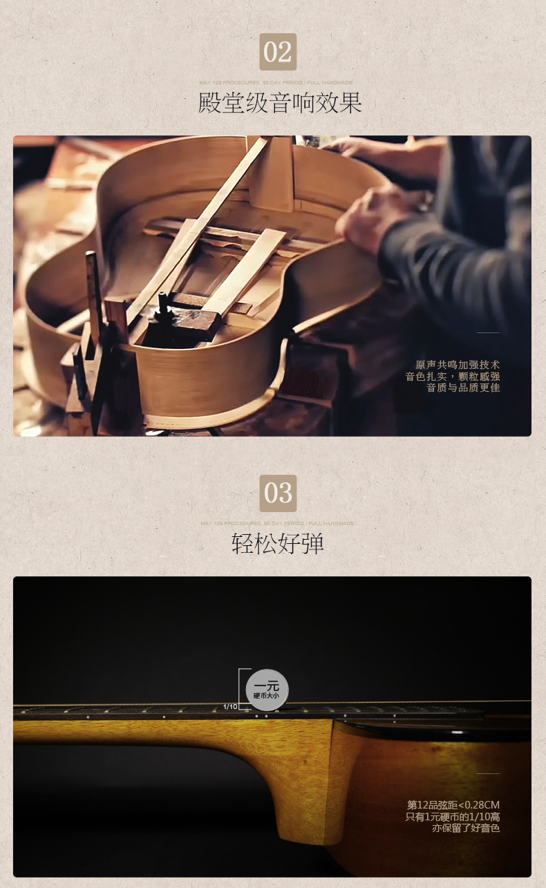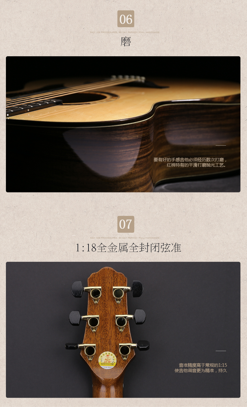 kapok红棉手工全单民谣吉他专业级吉它41寸演奏级乐器弹唱jita