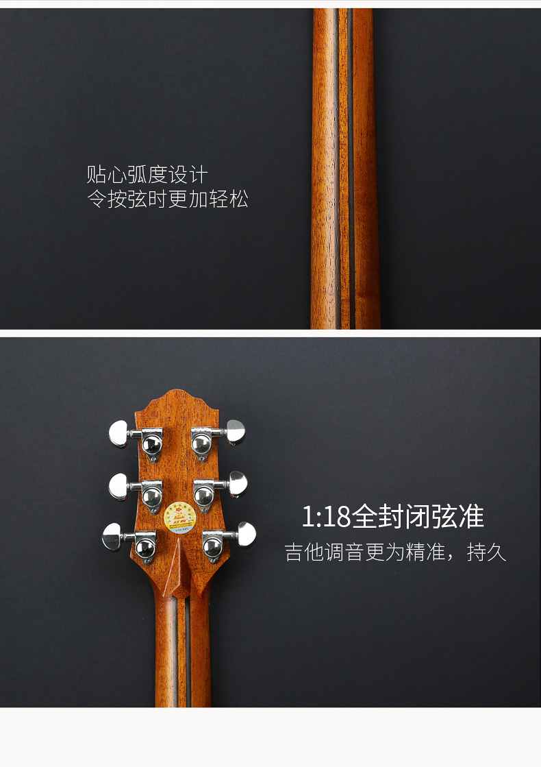 红棉吉他单板民谣吉他41寸面单木吉他初学者进阶电箱男入门学生女