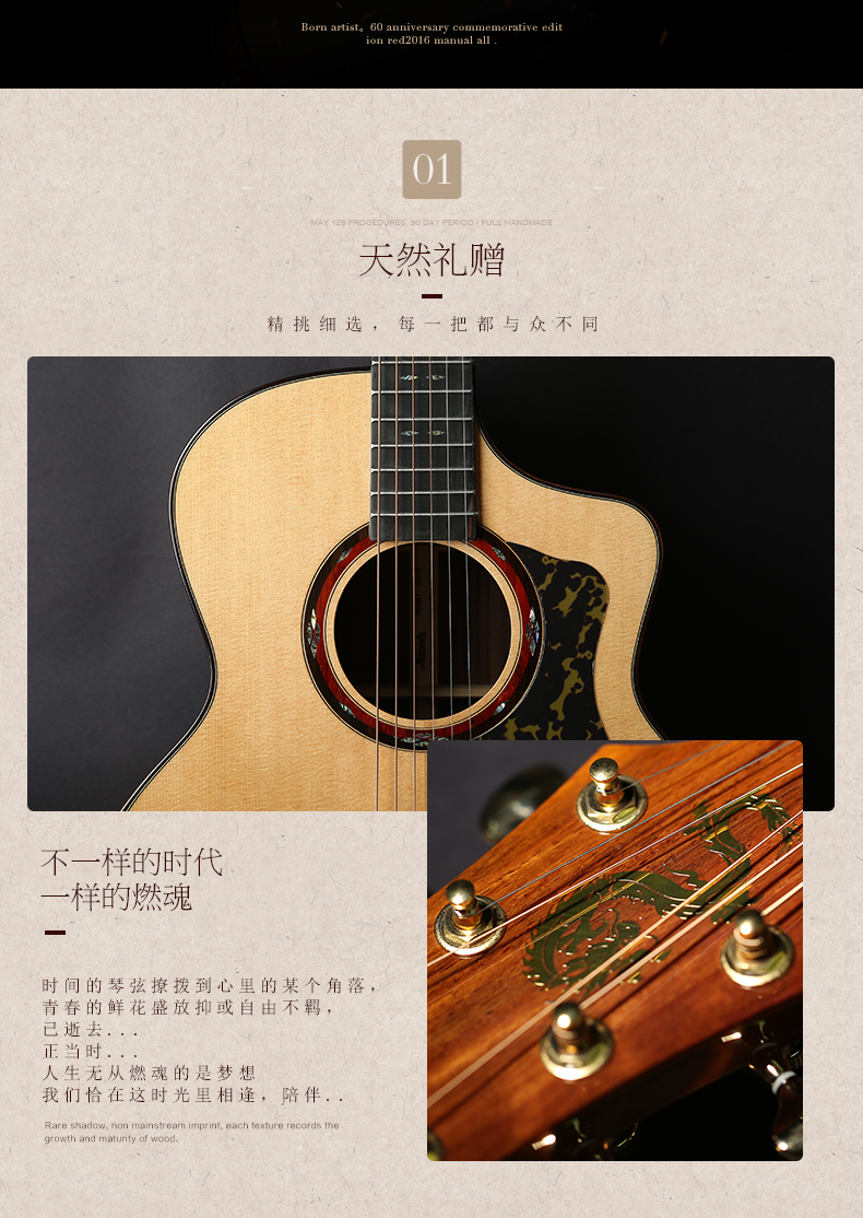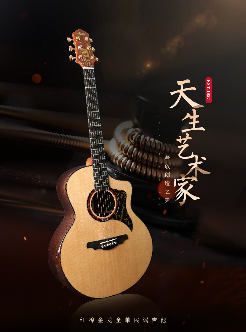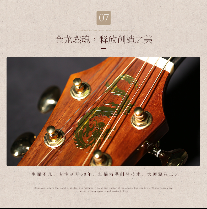 红棉吉他 全单板吉他民谣男木吉他41寸初学者进阶电箱单板吉它