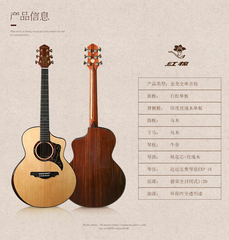 商品名称:红棉吉他 全单板吉他民谣男木吉他41寸初学者进阶电箱单板吉它