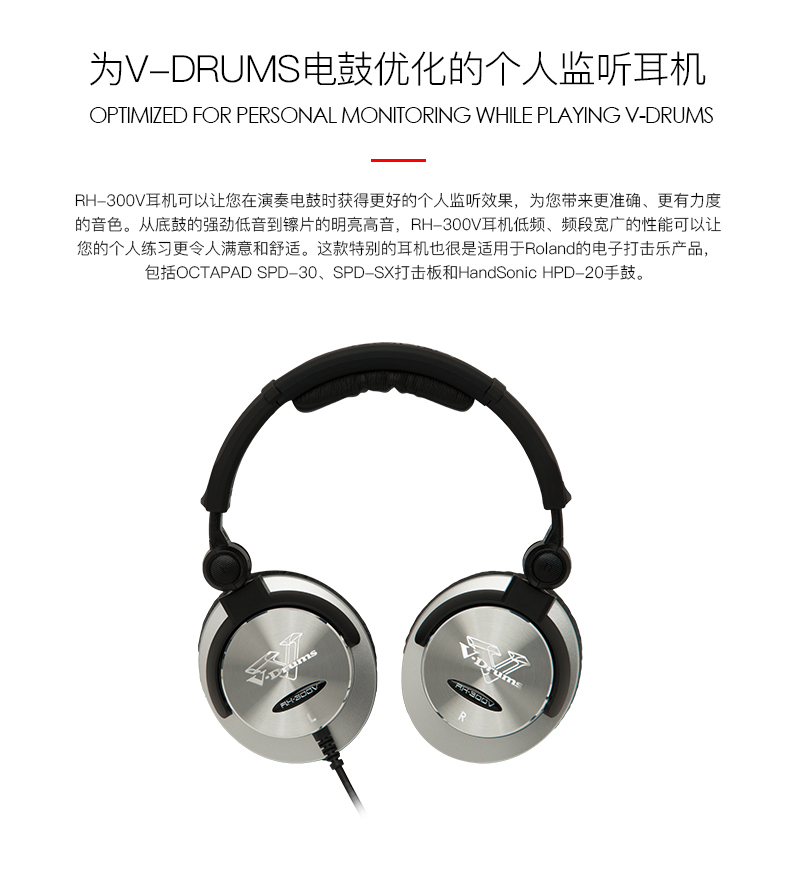 商品名称:Roland罗兰 RH-300V 监听耳机 V-Drums 立体声监听电钢琴电鼓耳机