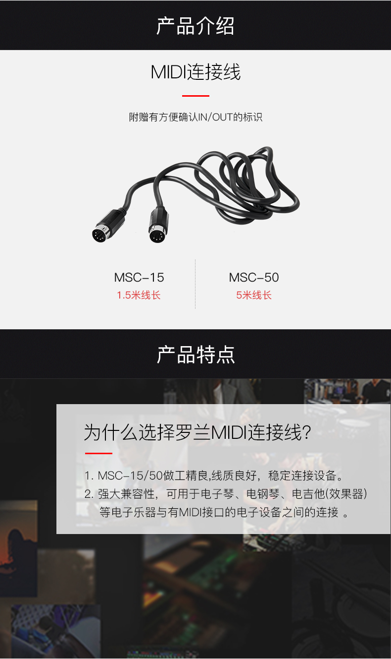 罗兰Roland MSC-15 1.5米/MSC-50 5米 MIDI五针迷笛连接线