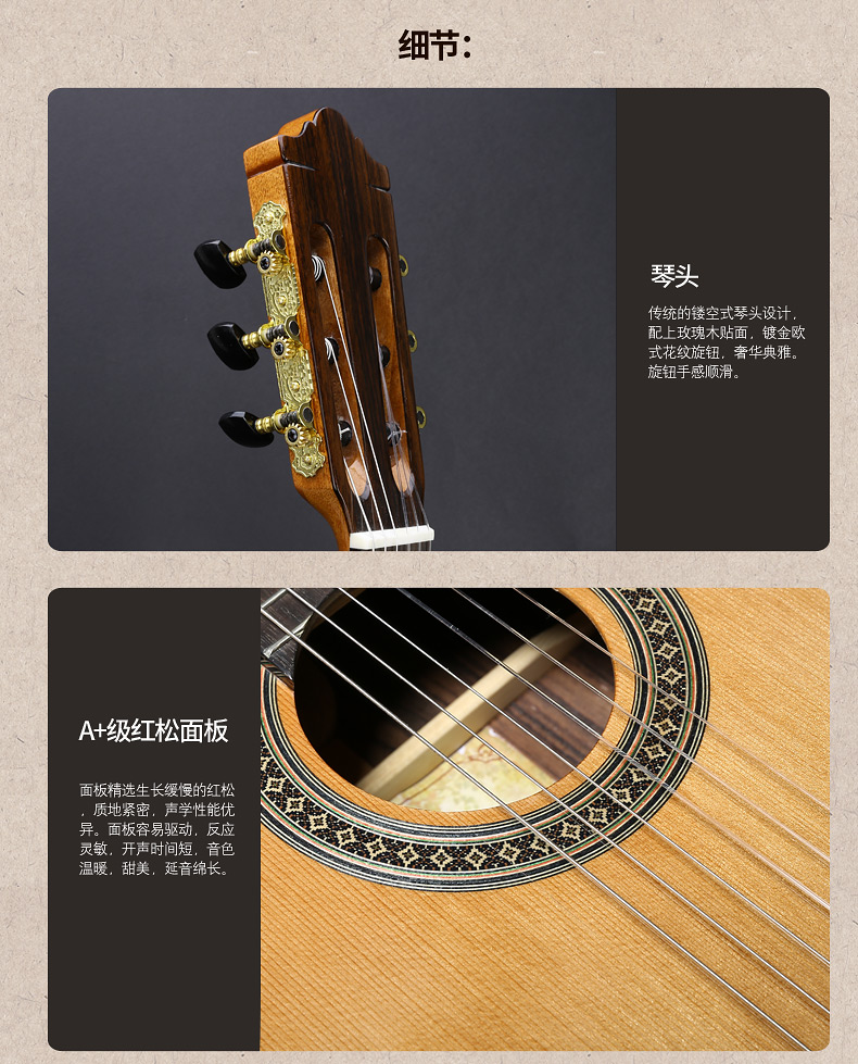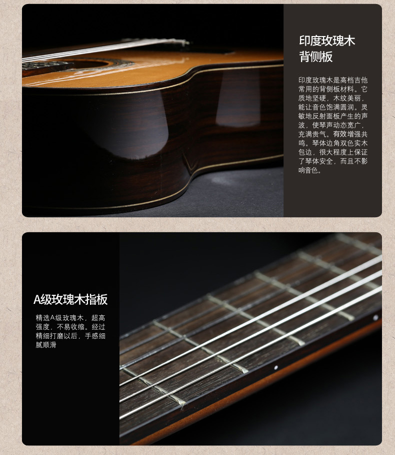 商品名称:红棉吉他39寸古典单板吉他练习木吉他初学者男面单学生女进阶吉它
