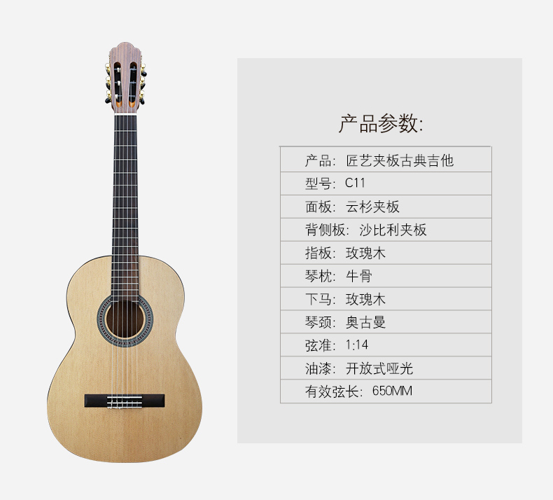 匠艺夹板,初学者古典吉他
