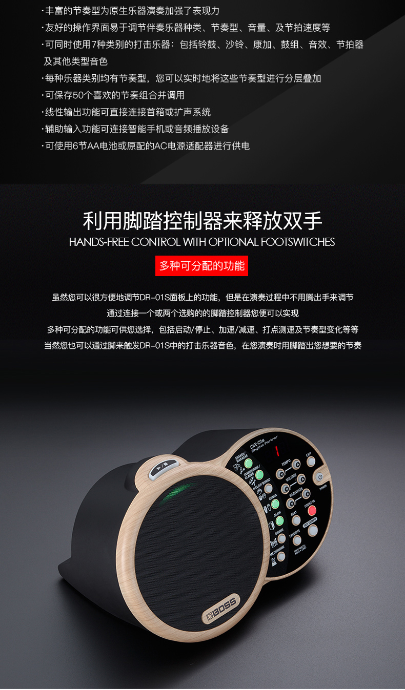 商品名称:Roland罗兰 BOSS DR-01S 吉他伴侣鼓机节奏器弹唱自动伴奏效果器