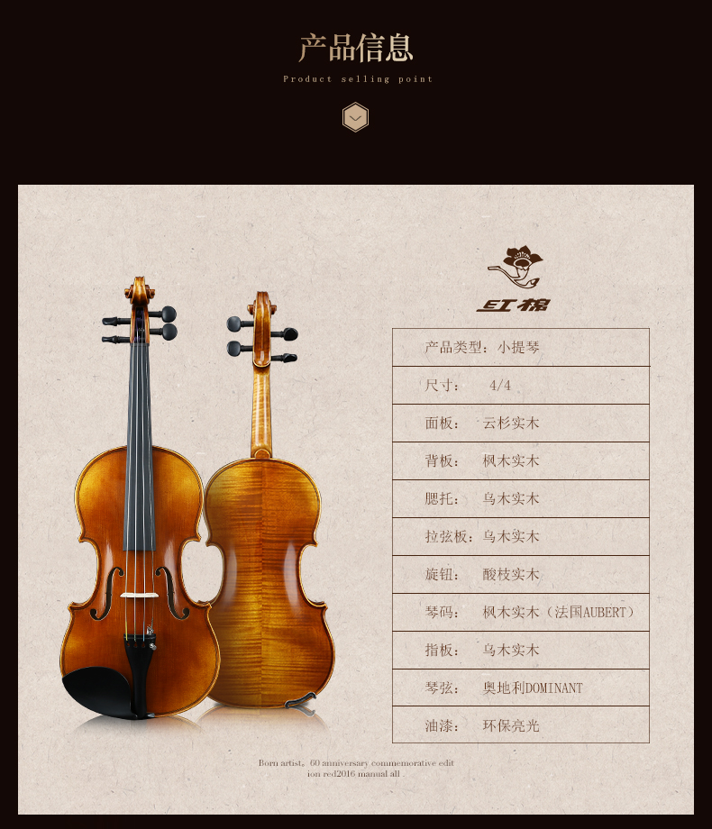 商品名称:红棉小提琴专业成人考级独奏演奏小提琴 高档纯手工制作舞台提琴