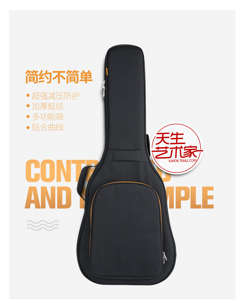 商品名称:kapok红棉民谣包36寸吉他背包41寸加厚珍珠棉双肩袋吉他琴包KG83
