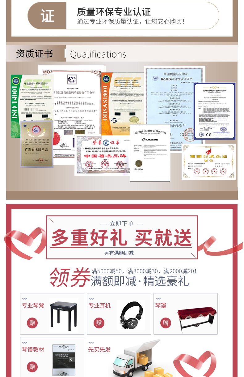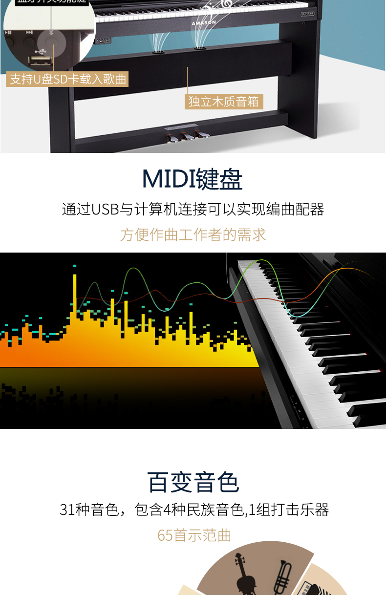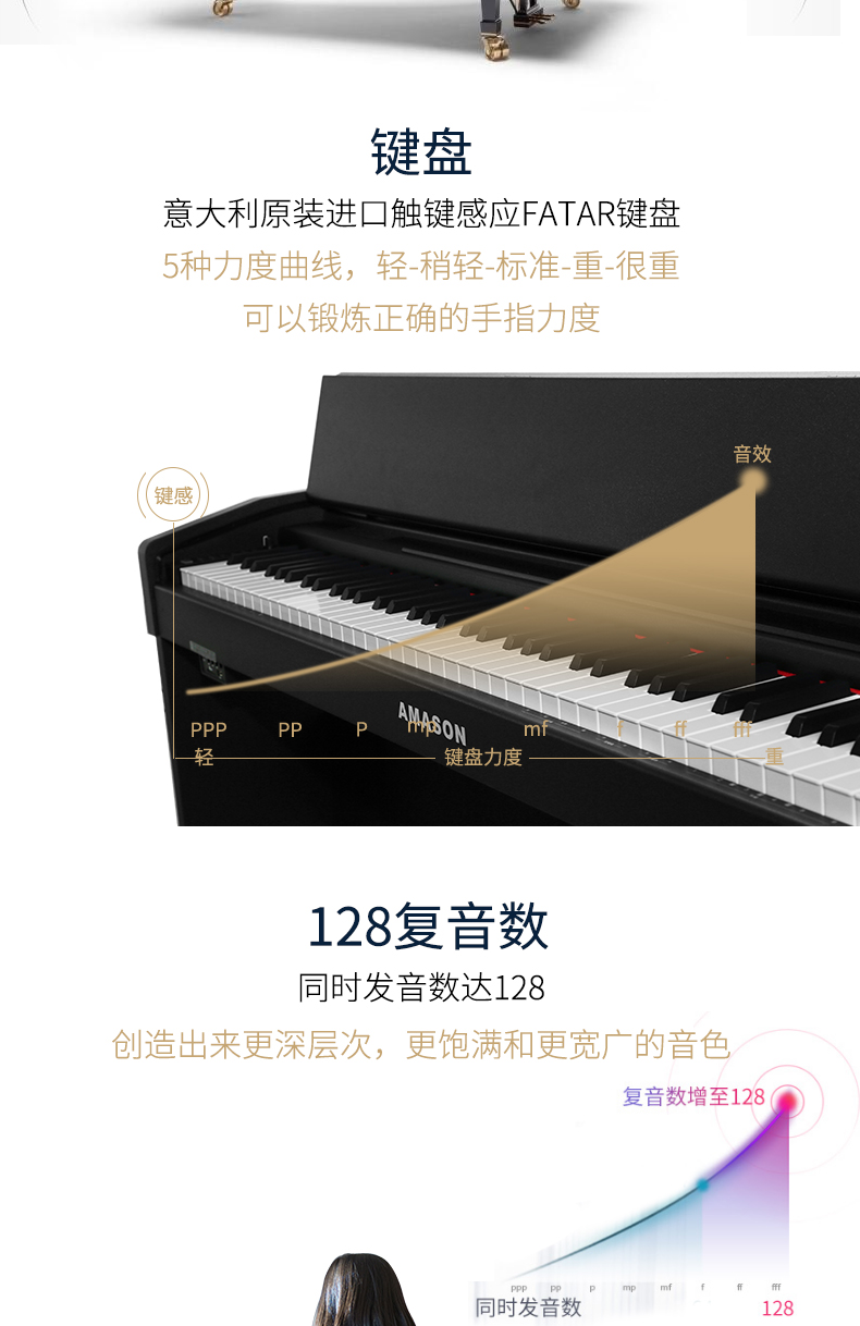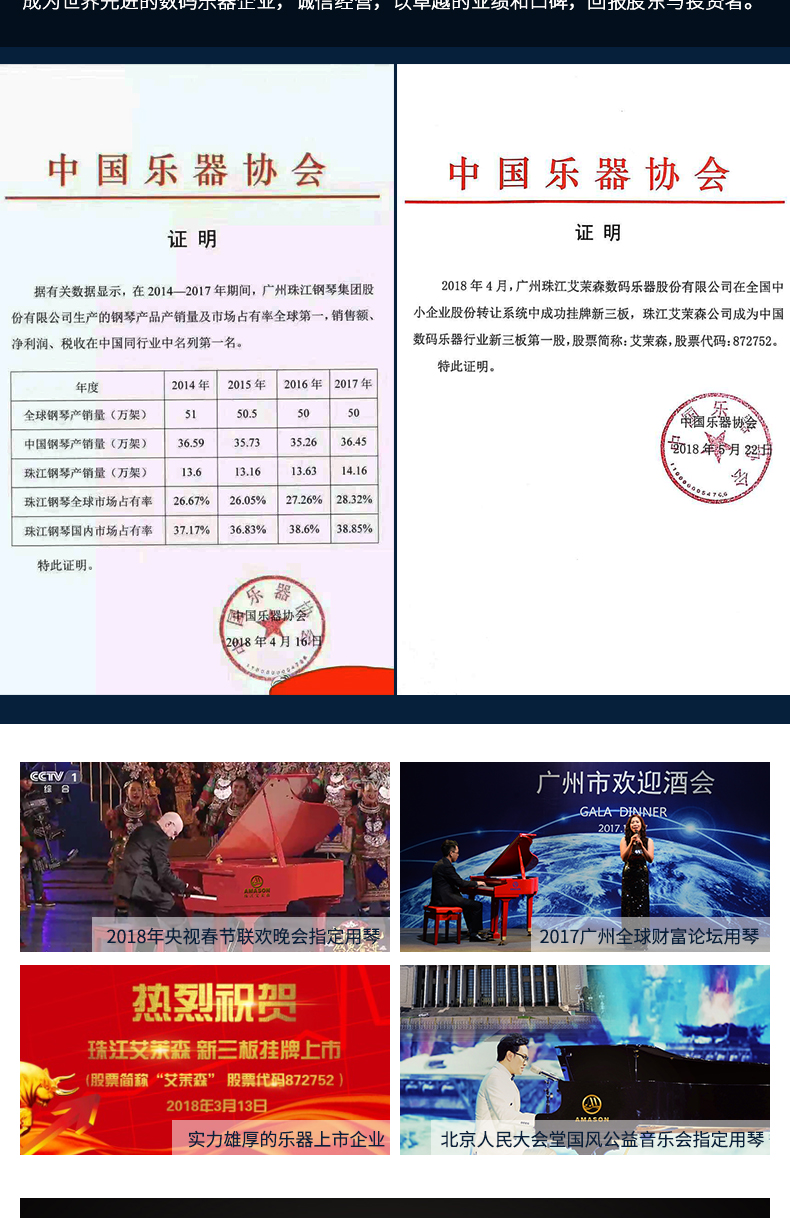 商品名称:珠江艾茉森F10电钢琴88键重锤专业儿童成人初学家用电子数码钢琴