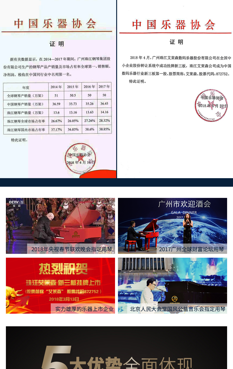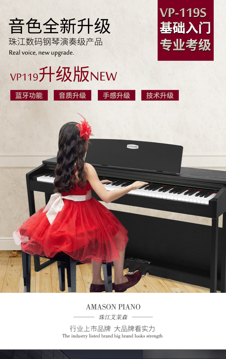 珠江艾茉森vp119S电钢琴88键重锤家用专业初学者电子数码钢琴