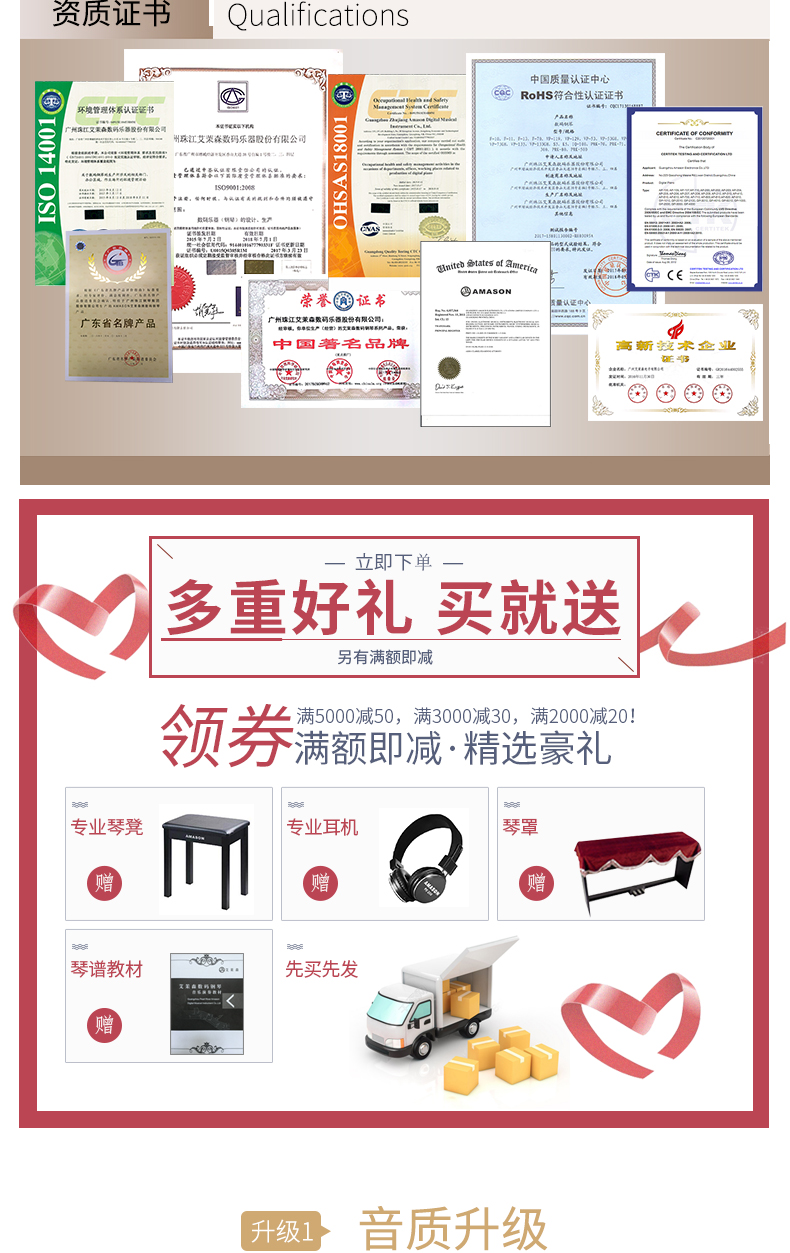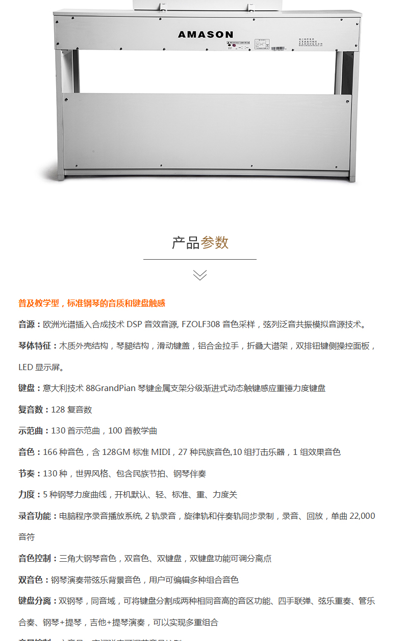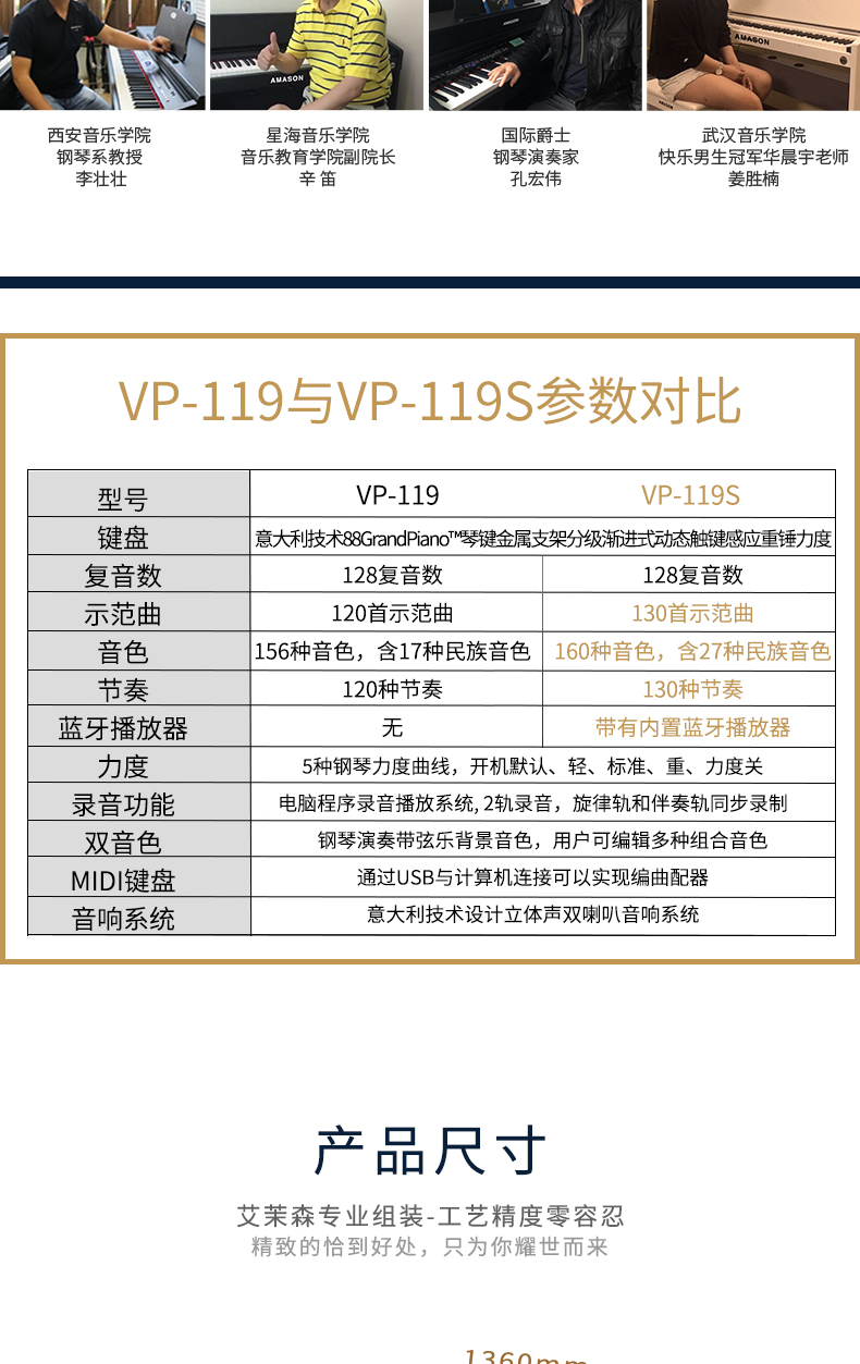商品名称:珠江艾茉森vp119S电钢琴88键重锤家用专业初学者电子数码钢琴