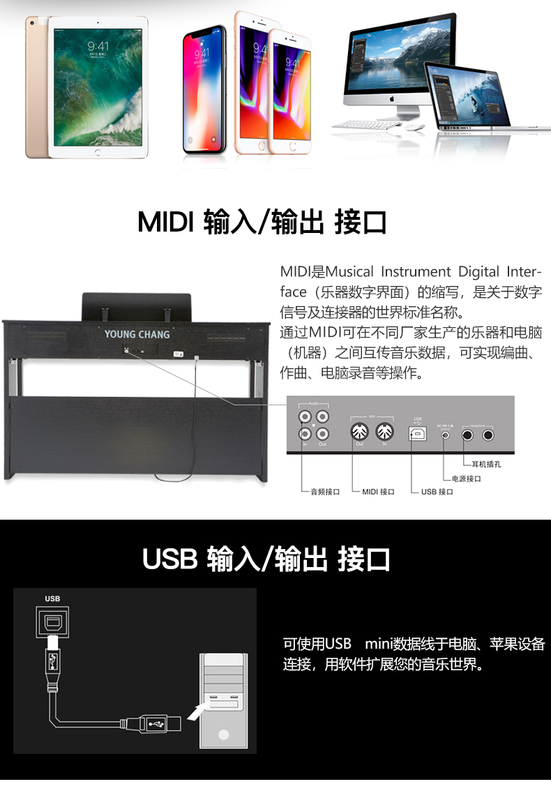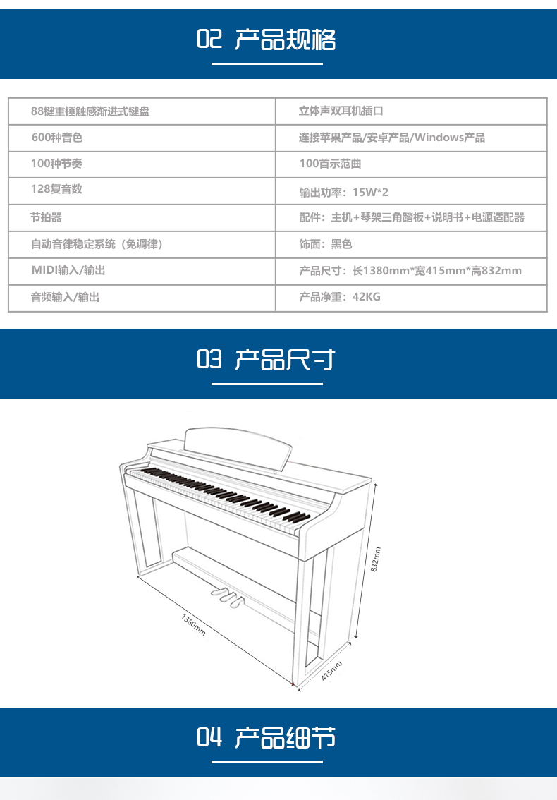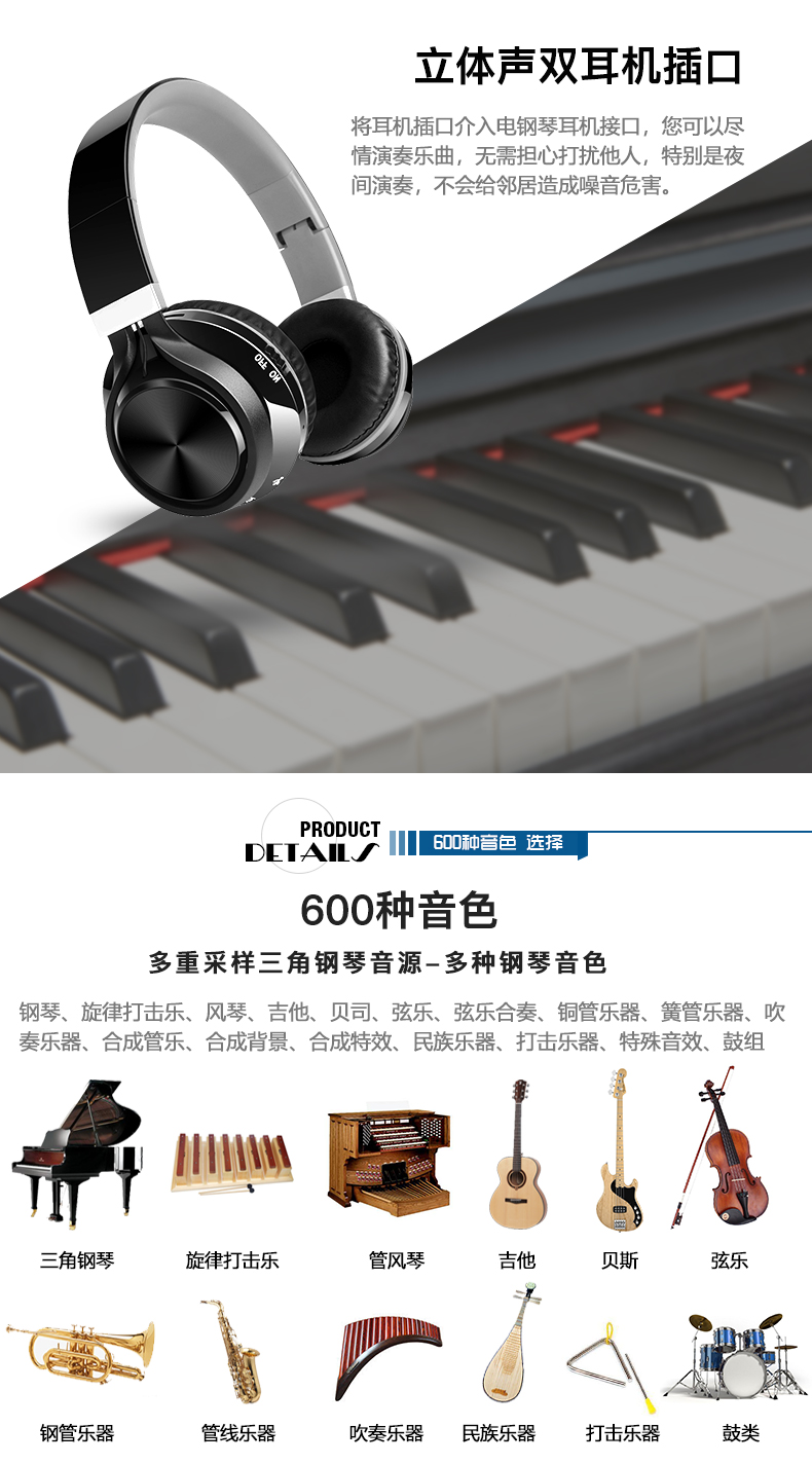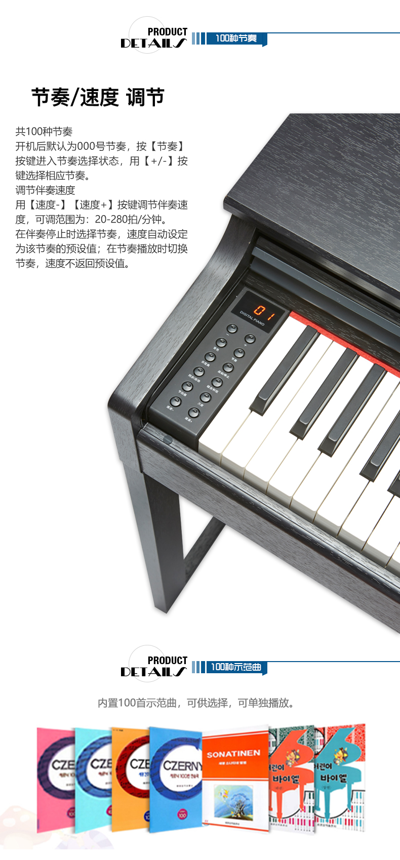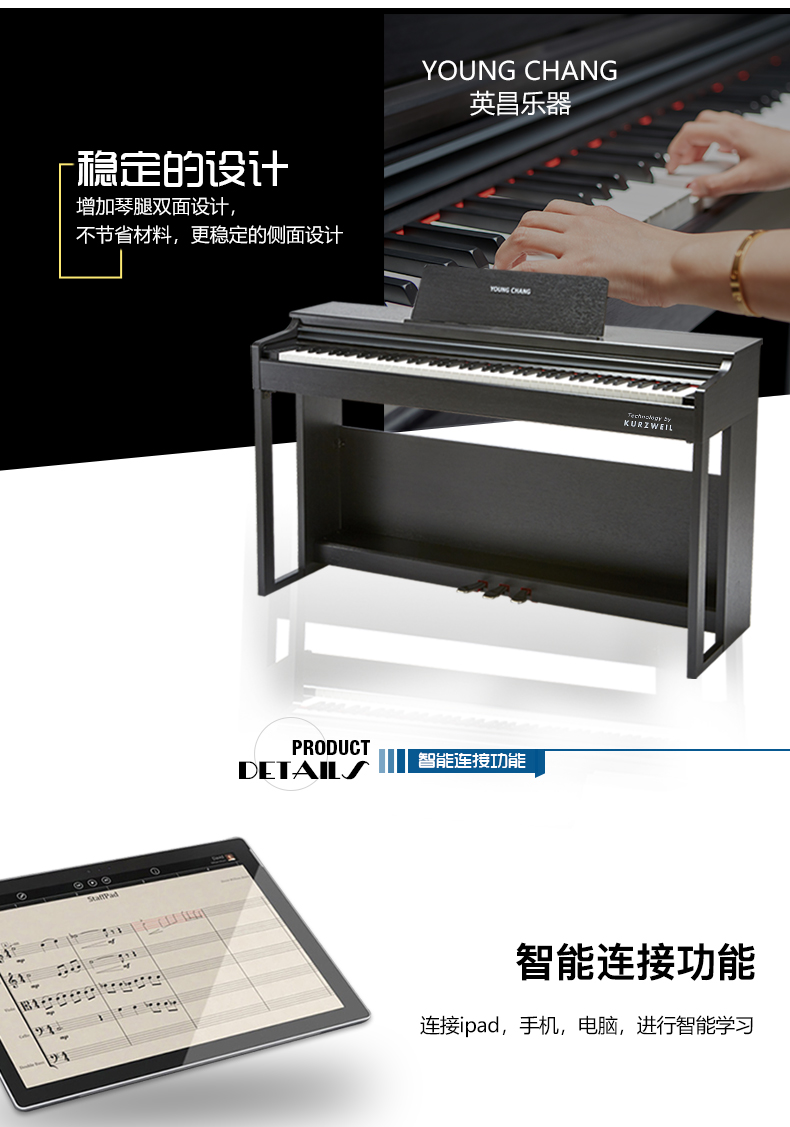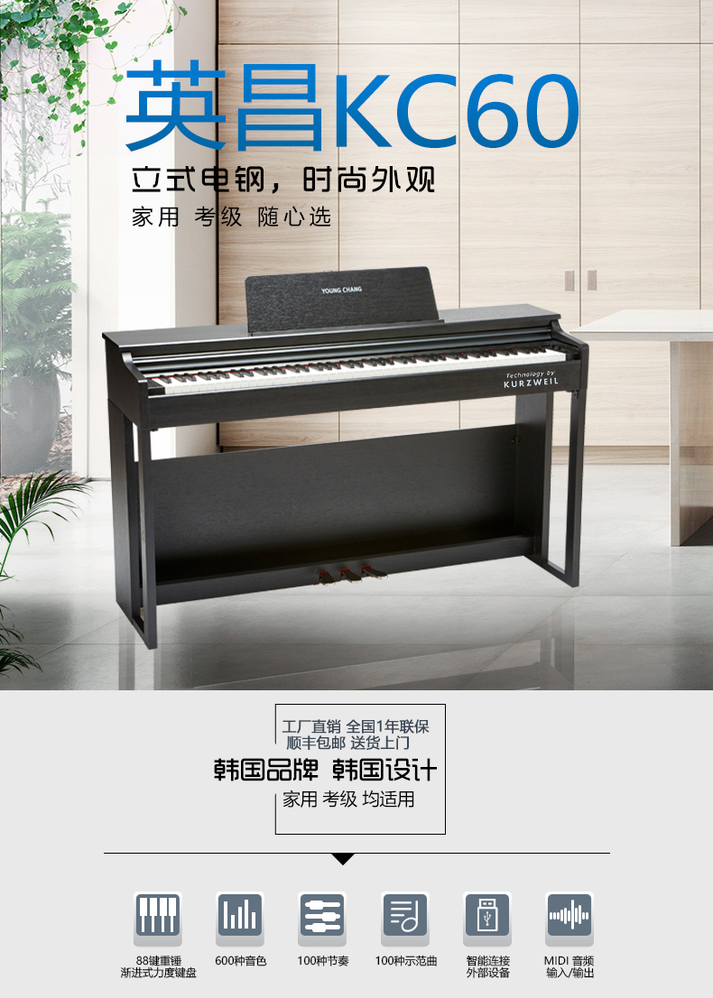 商品名称:英昌电钢琴 KC60 88键重锤渐进式力度键盘 家用 考级 时尚外观