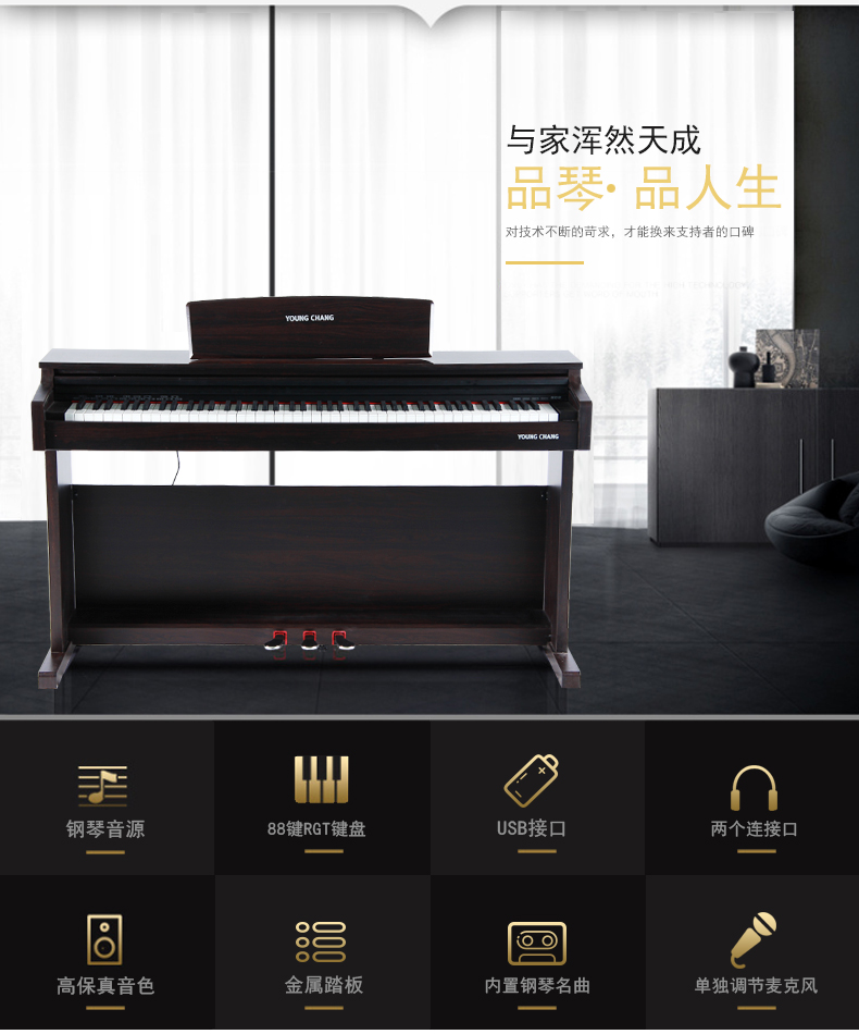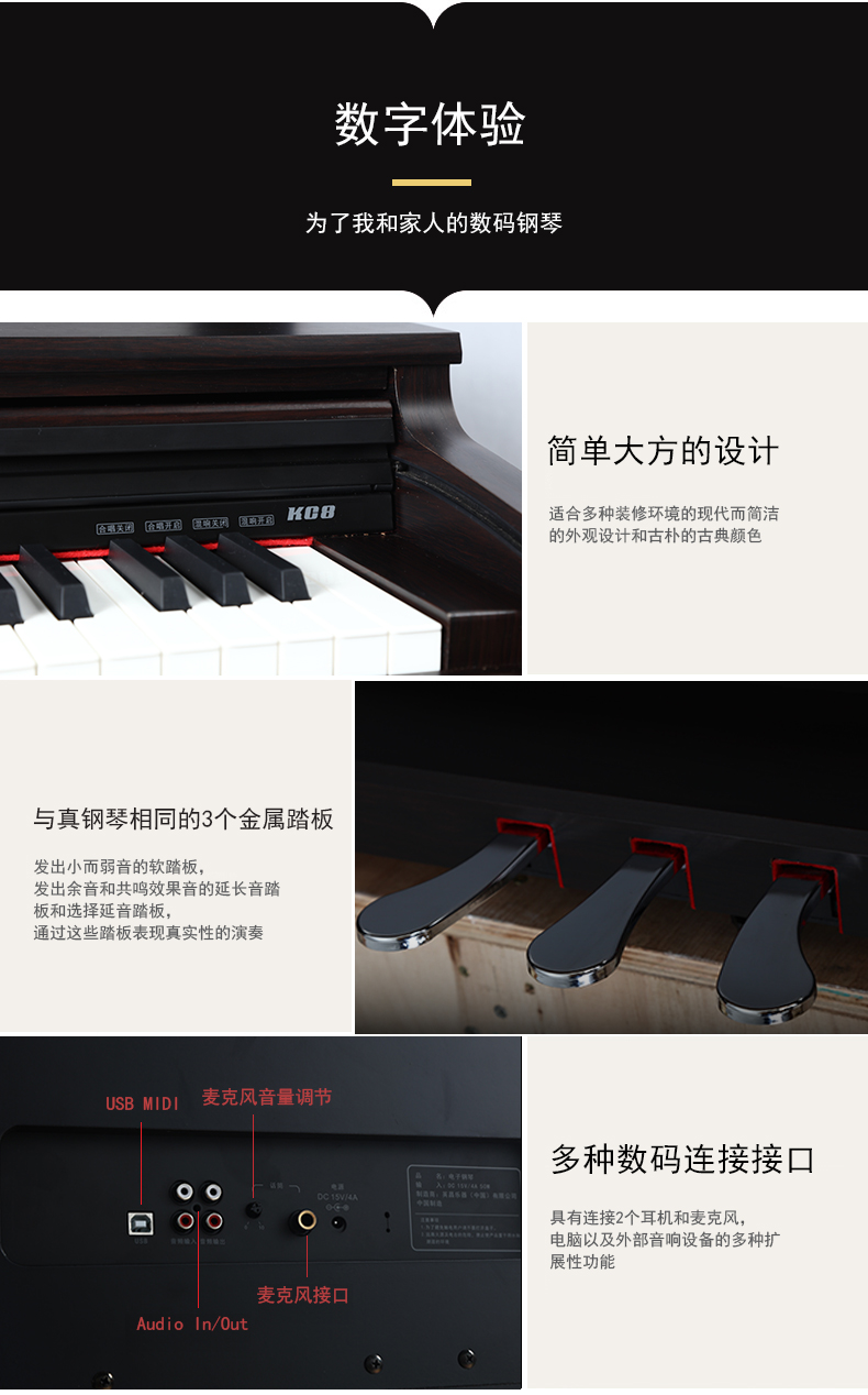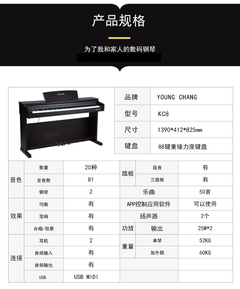 商品名称:英昌 家用立式电钢琴初学者智能数码钢琴KC8电子钢琴88键