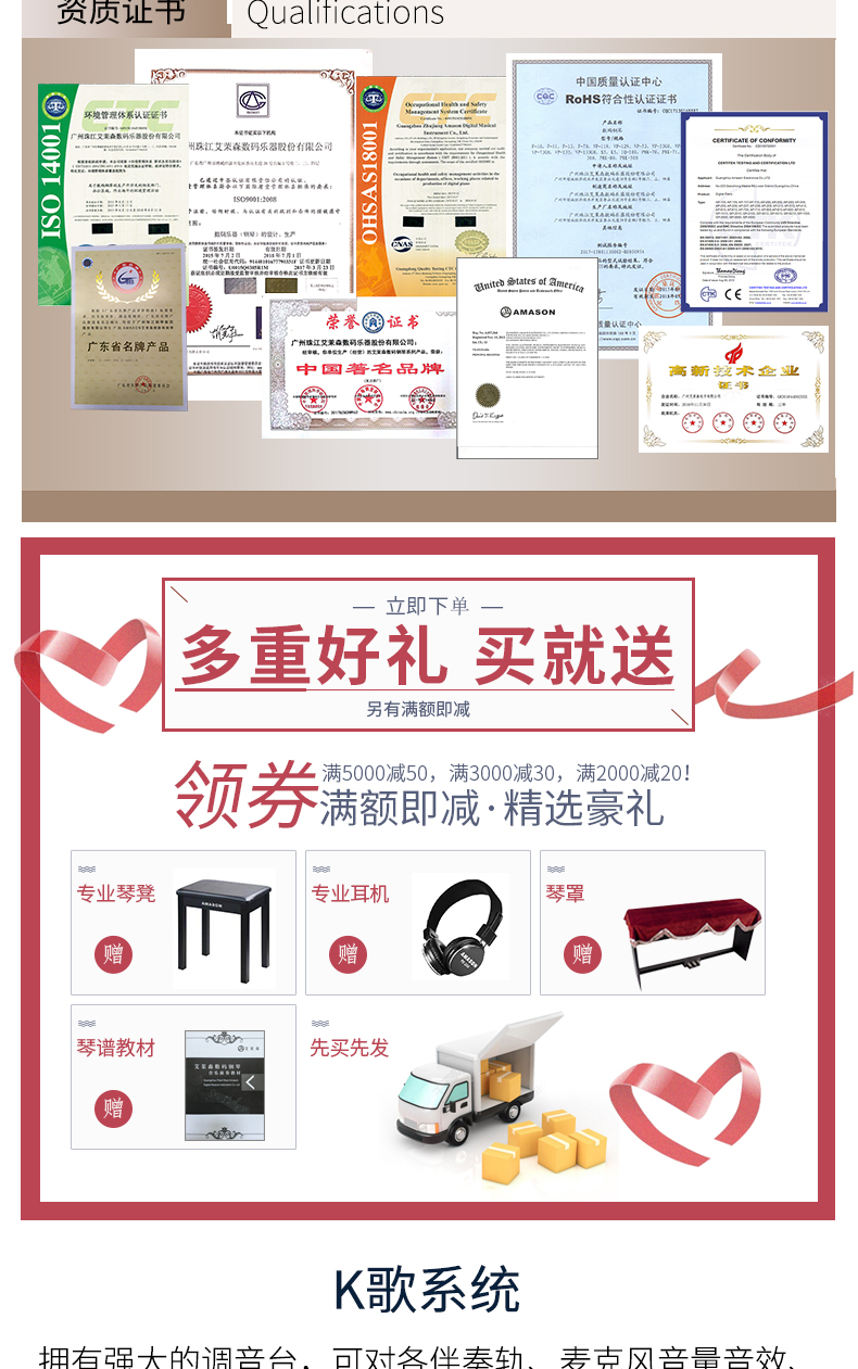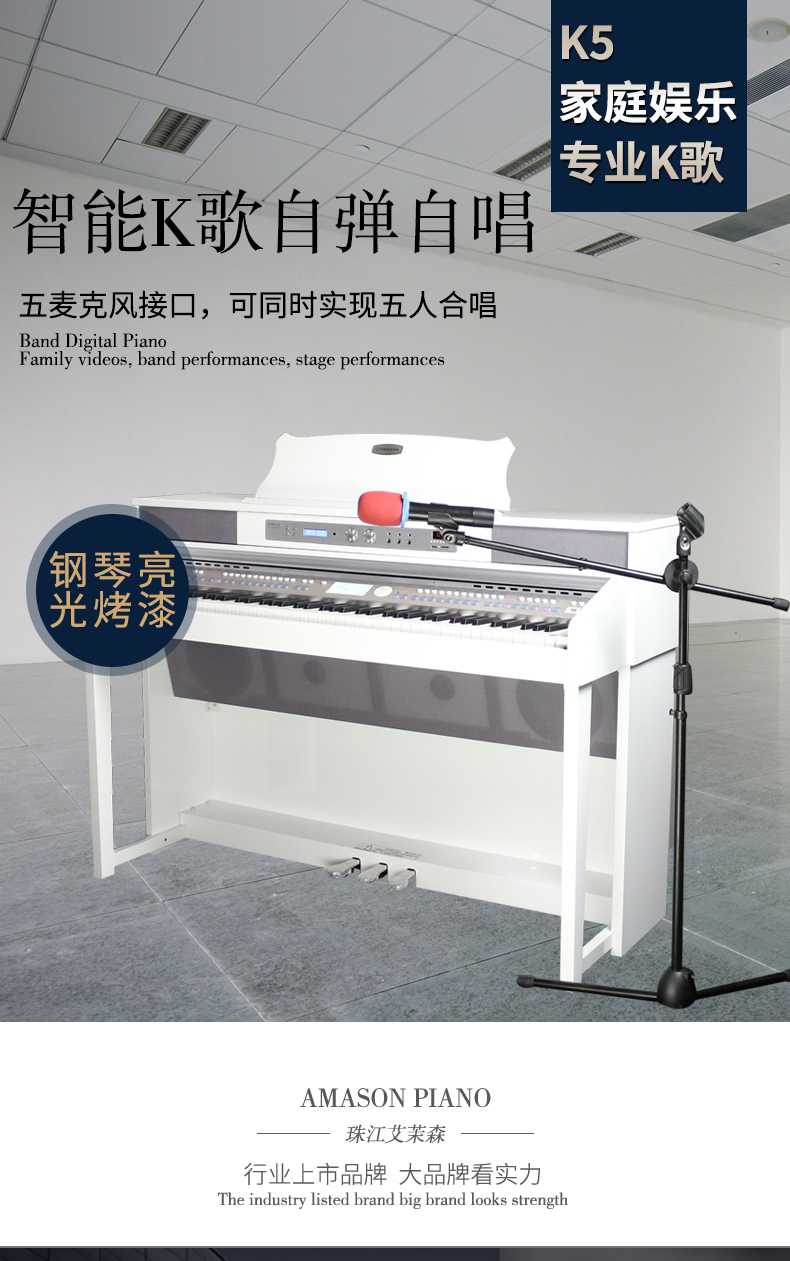 商品名称:珠江艾茉森K5电钢琴88键重锤专业成人家用卡拉OK智能电子数码钢琴
