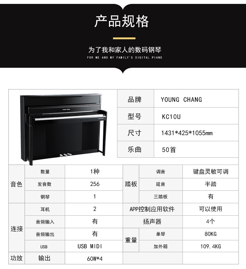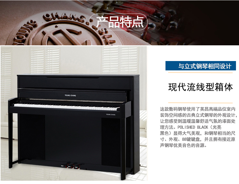 商品名称:HDC集团YOUNGCHANG英昌KC10U数码钢琴立式电钢琴88键