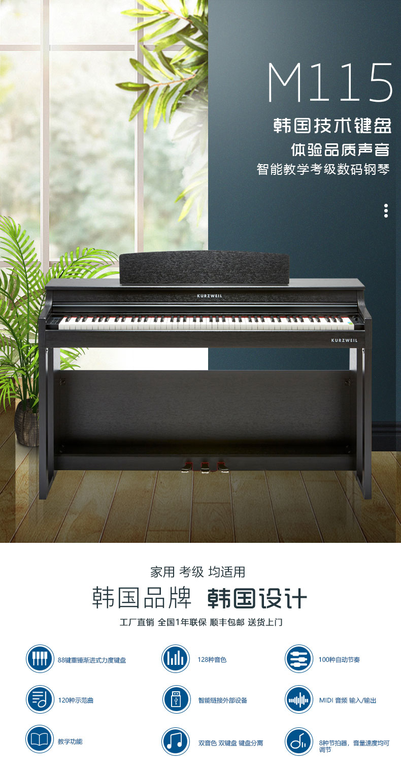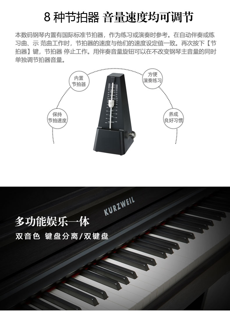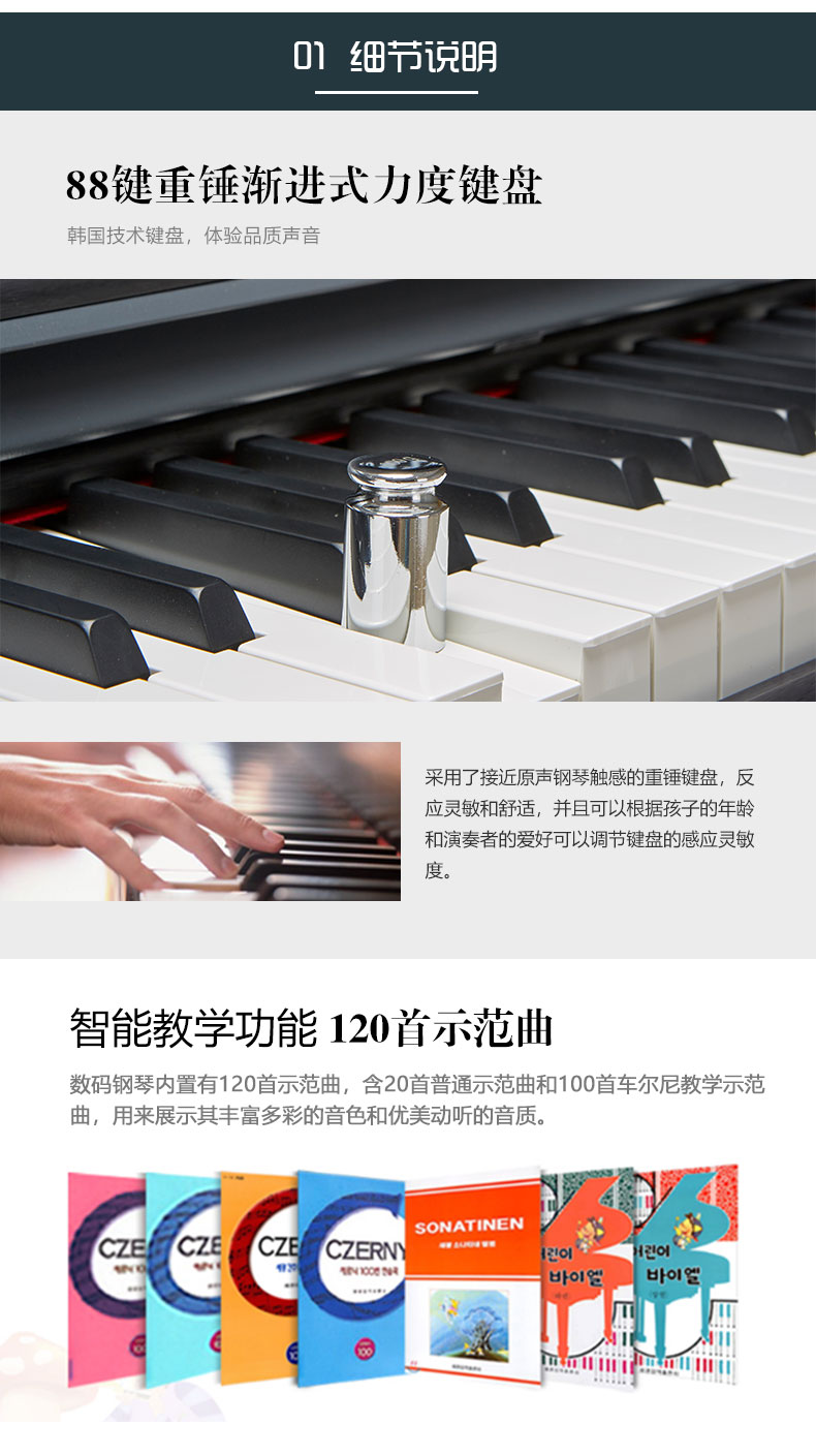 128种音色 120种示范曲 录音功能 88键重锤