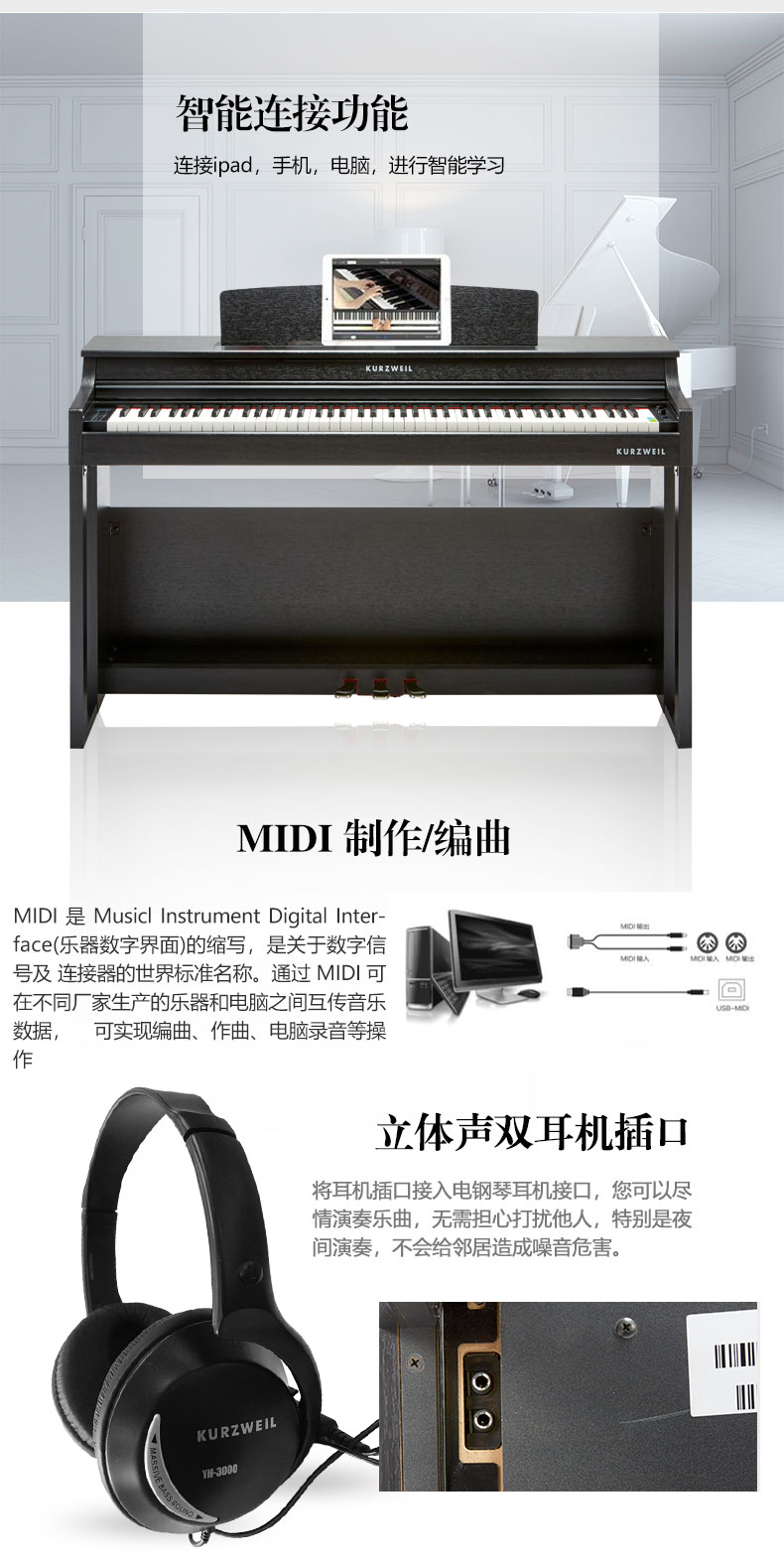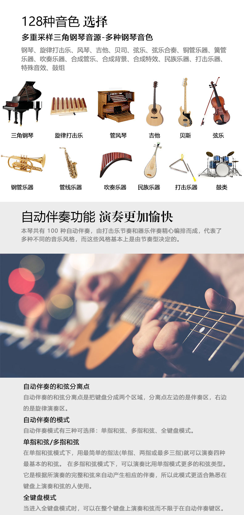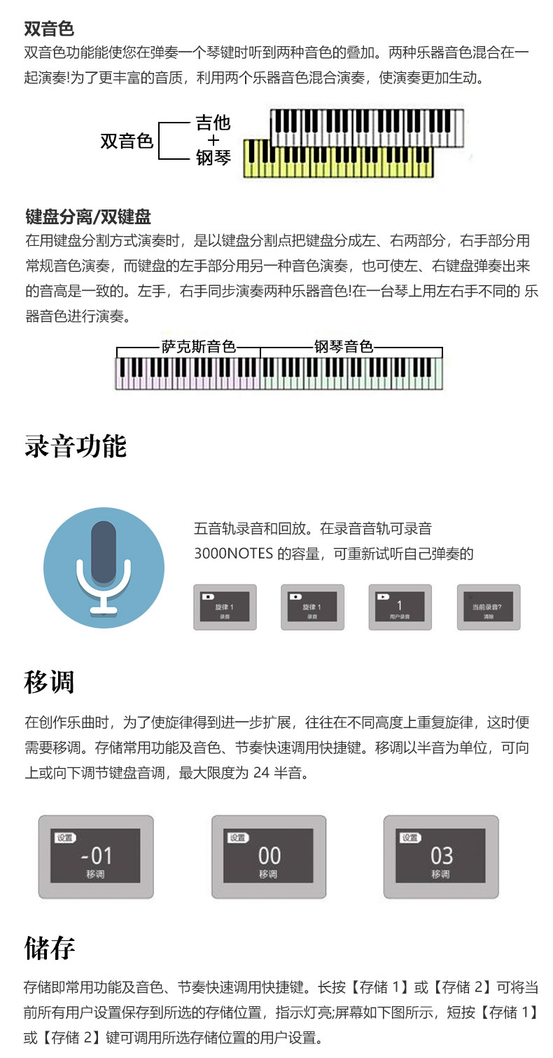 128种音色 120种示范曲 录音功能 88键重锤