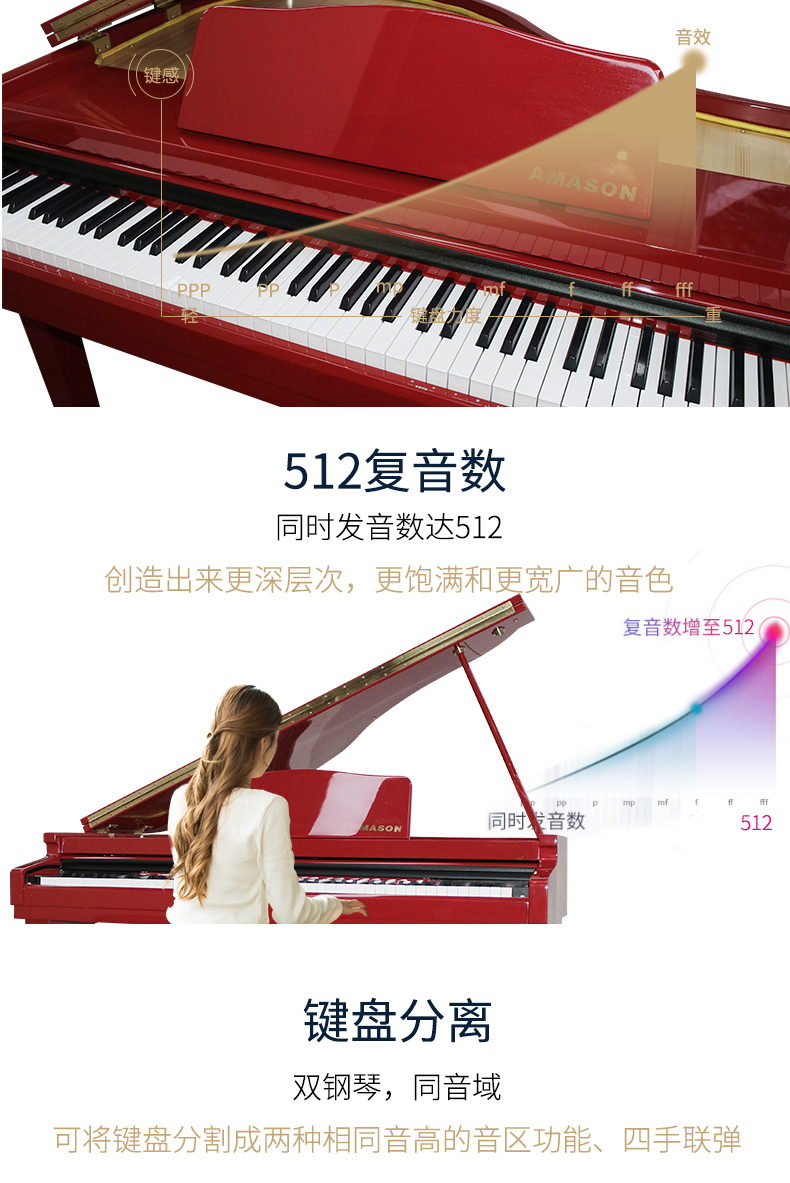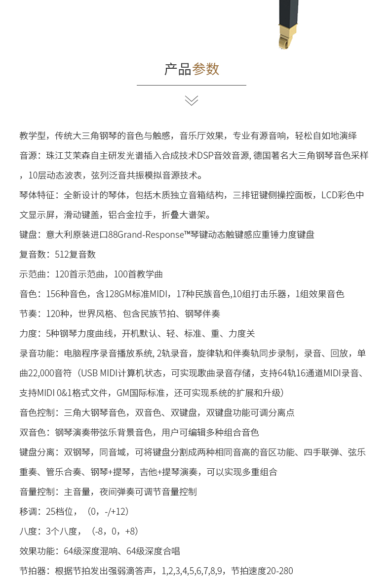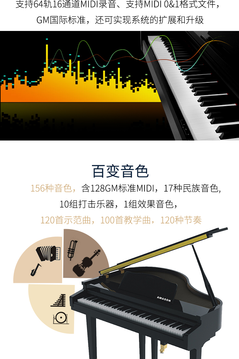 商品名称:艾茉森GP-1100三角数码钢琴 88键重锤专业版成人钢琴 家用钢琴