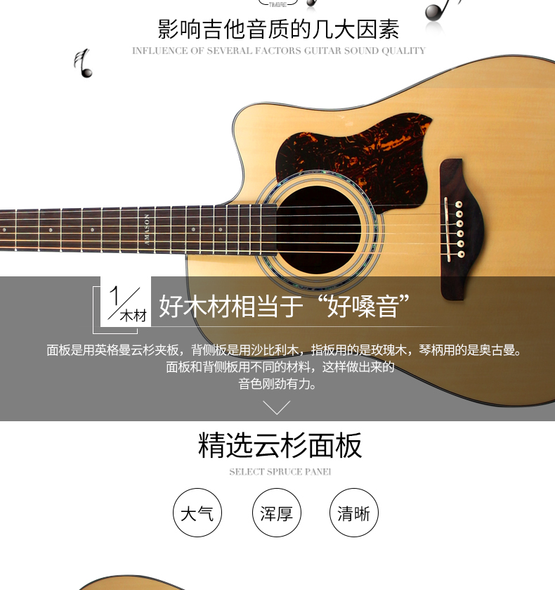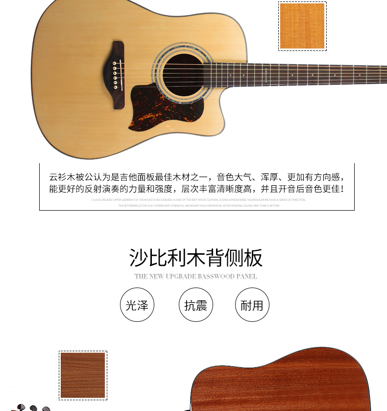 商品名称:珠江艾茉森电吉他A-D10C专业男女民谣木吉它初学者入门电箱吉他