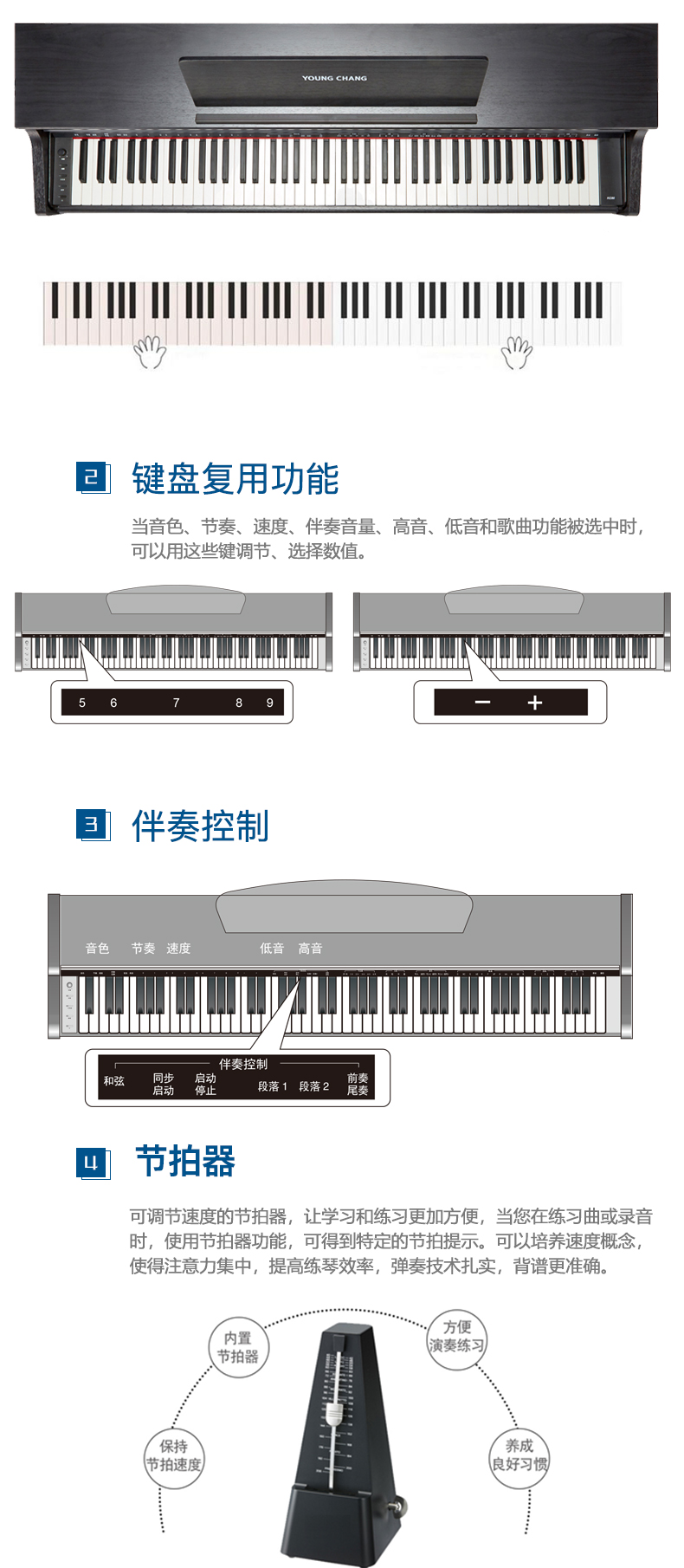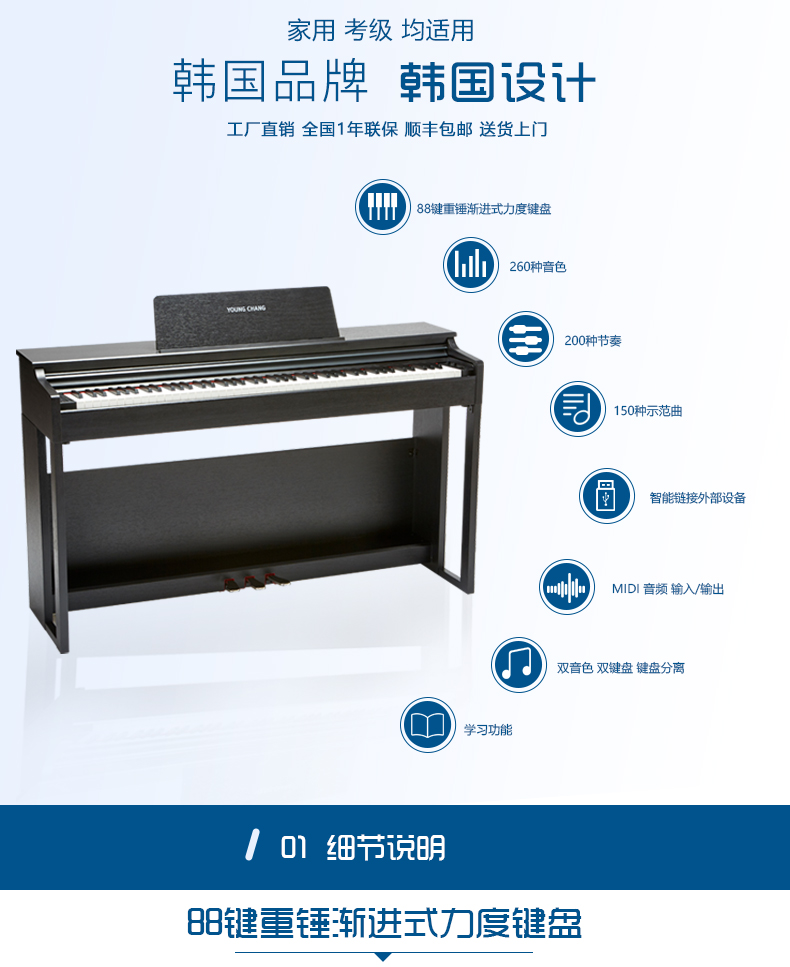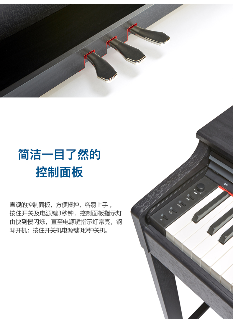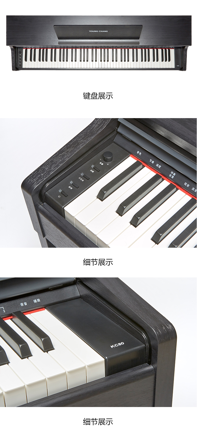 商品名称:英昌电钢琴 KC80 三角钢琴音色 学习功能 考级可用 双音色 双键盘