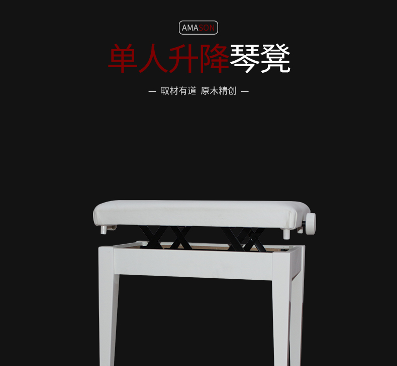 珠江艾茉森实木单人钢琴凳 可升降电钢琴凳 成人儿童钢琴椅