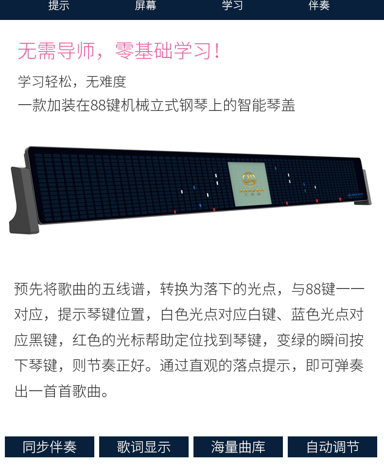商品名称:艾茉森智能钢琴陪练机自学88键钢琴成人家用初学者跟弹练习学习机