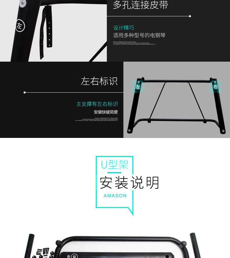 商品名称:珠江艾茉森88键电钢琴U型架金属U架电钢琴架电子琴架子通用键盘架