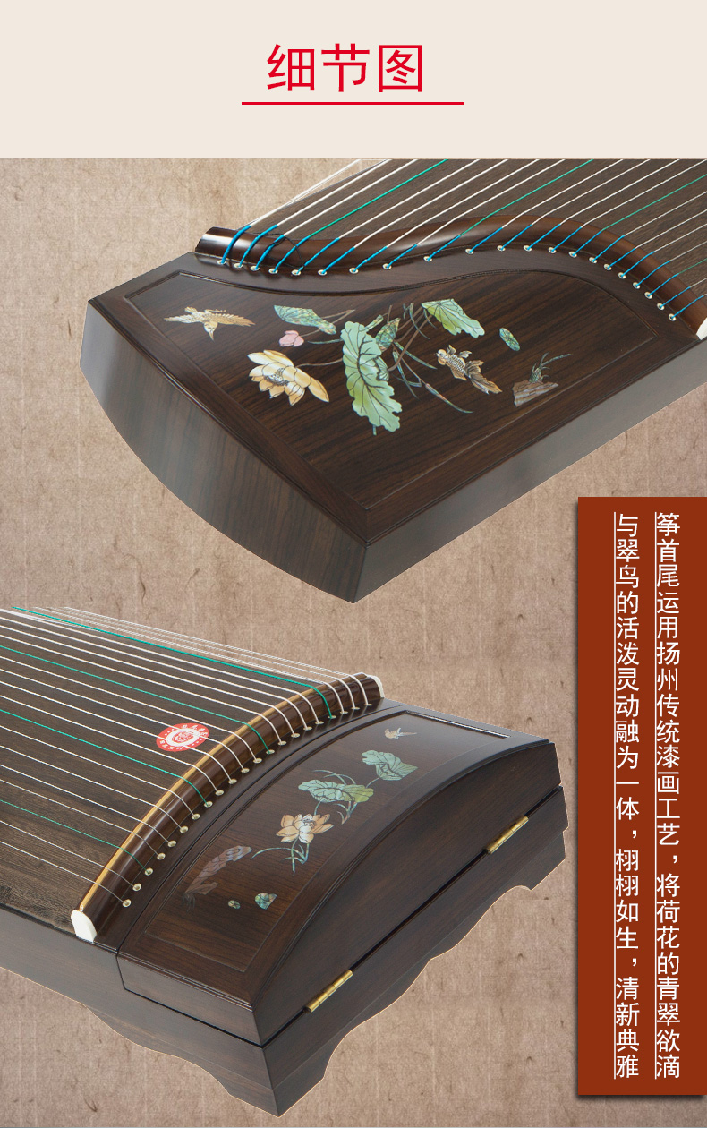 商品名称:龙凤古筝9610漆画工艺筝芙蓉鸣翠初学考级专业扬州古筝琴