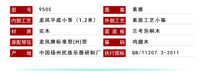 商品名称:龙凤古筝厂家直销9505田泉系列龙凤素韵小筝(1.2米)官网正品