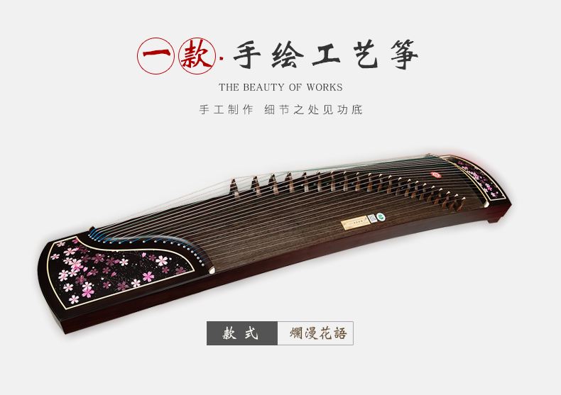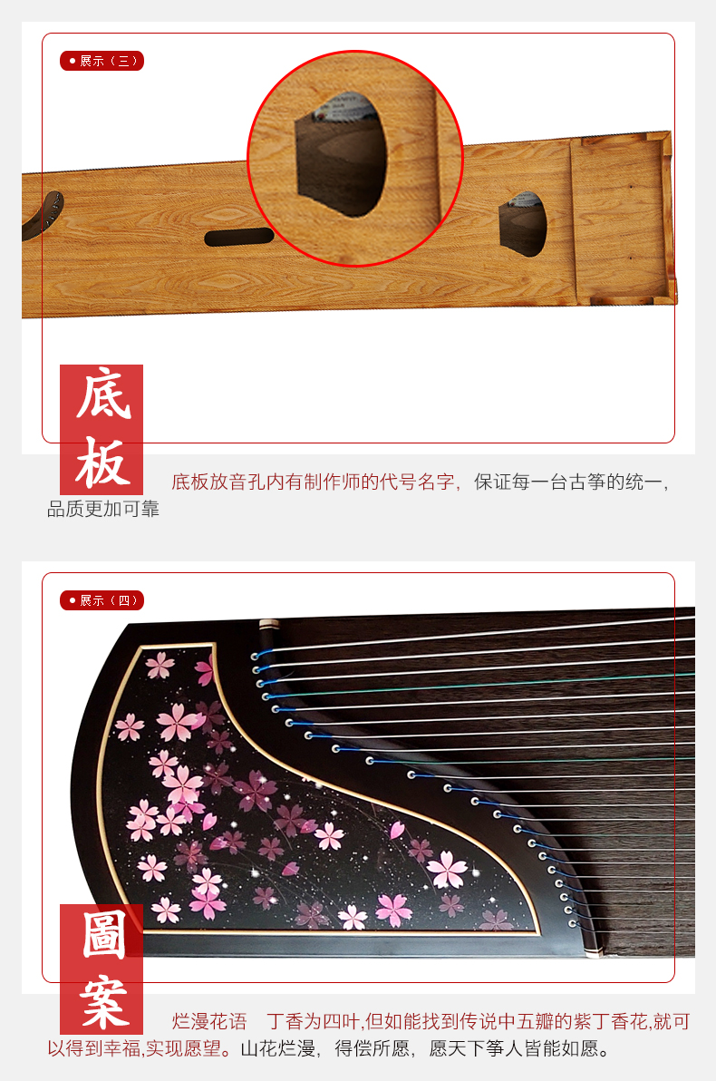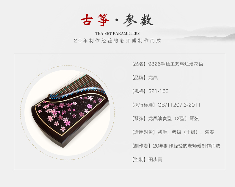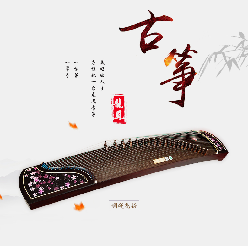 商品名称:龙凤古筝田泉系列9826黑檀工艺筝烂漫花语演奏级古筝