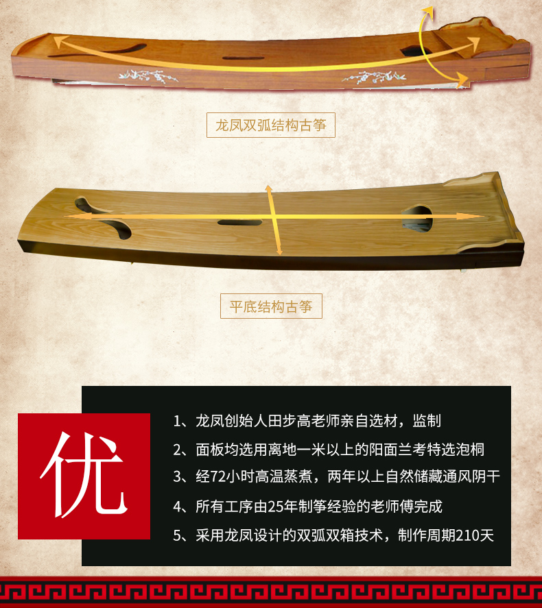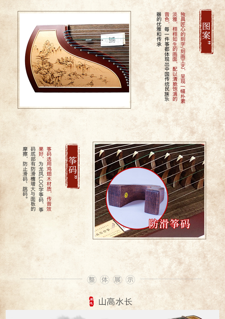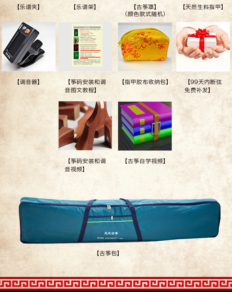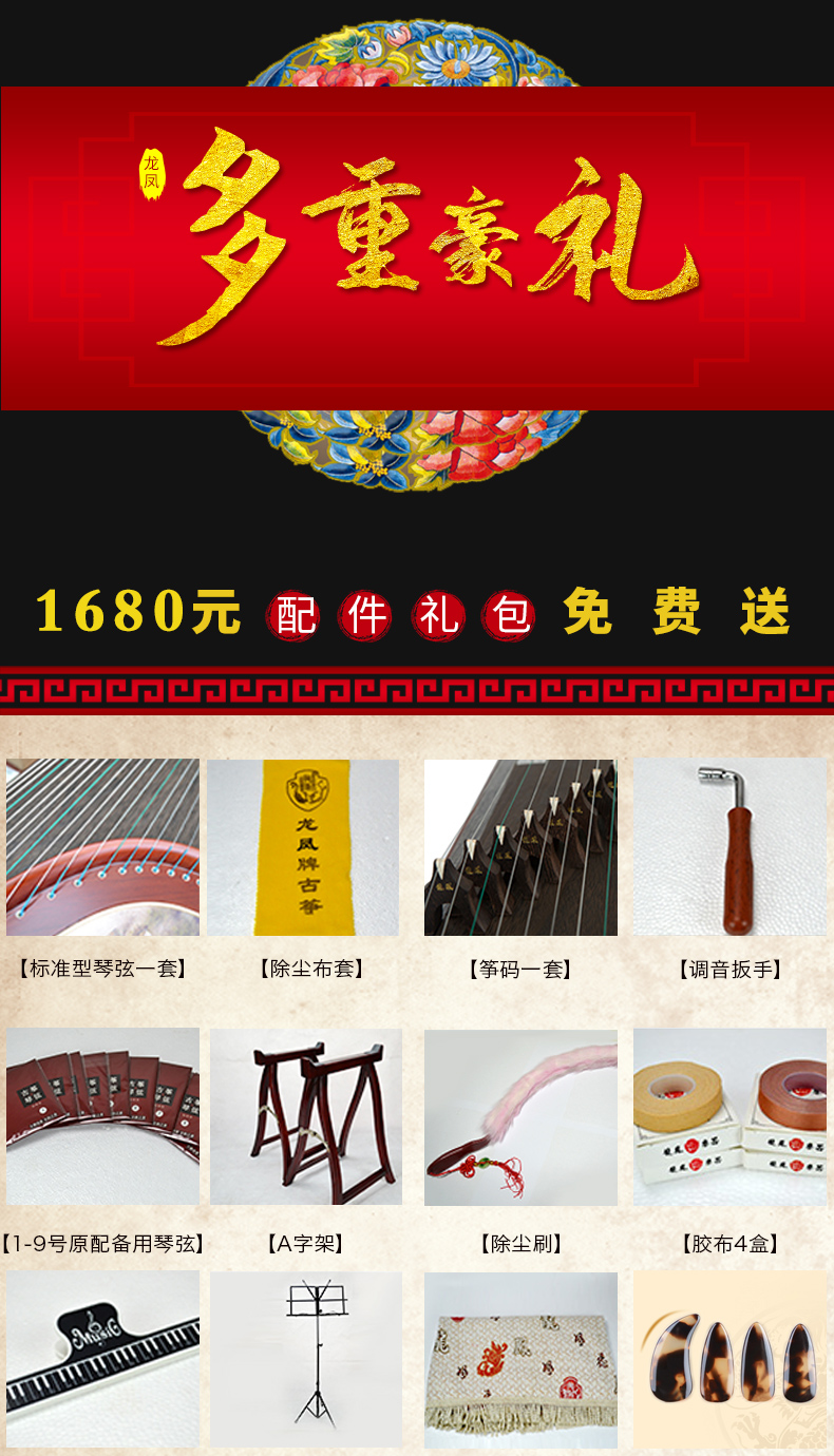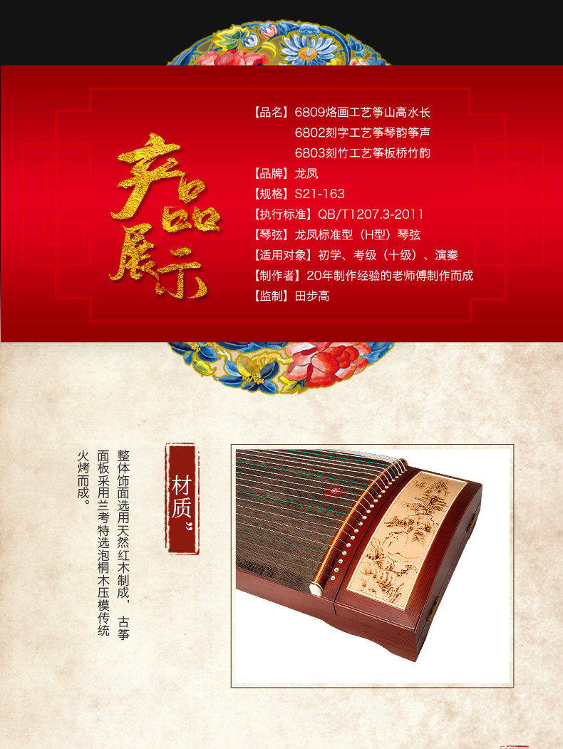商品名称:龙凤古筝6809 6803 6802初学者儿童成人考级专用实木扬州古筝琴