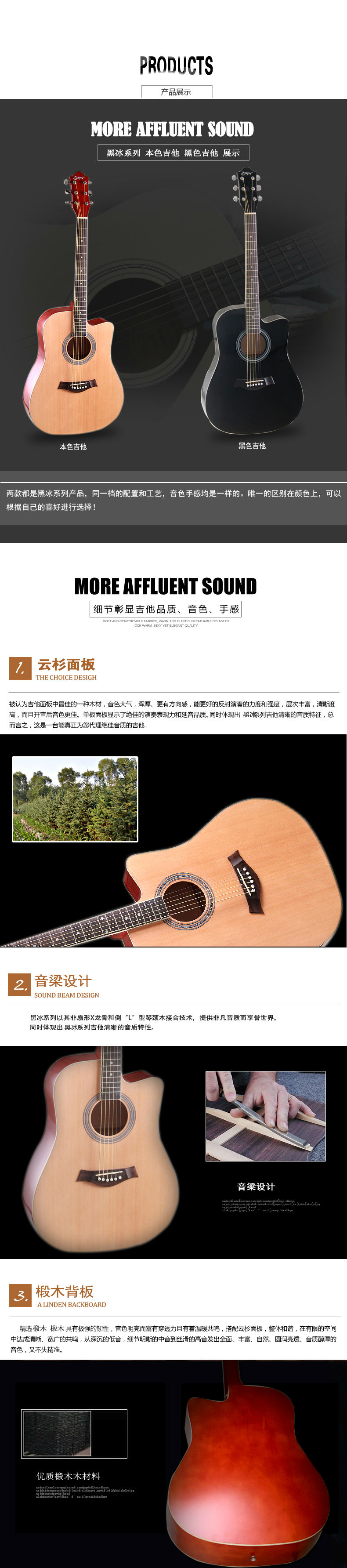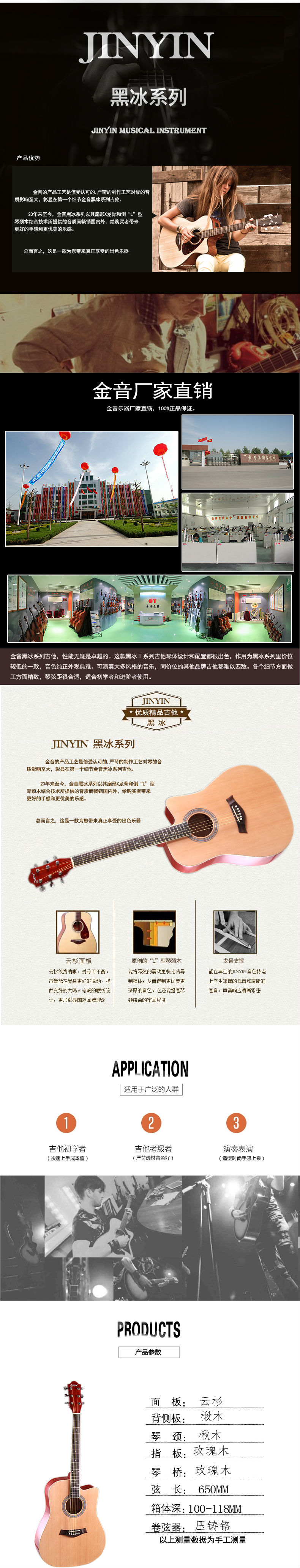 商品名称:金音乐器 JINYIN黑冰系列 41”民谣吉他 云杉玫瑰木正品厂家直销