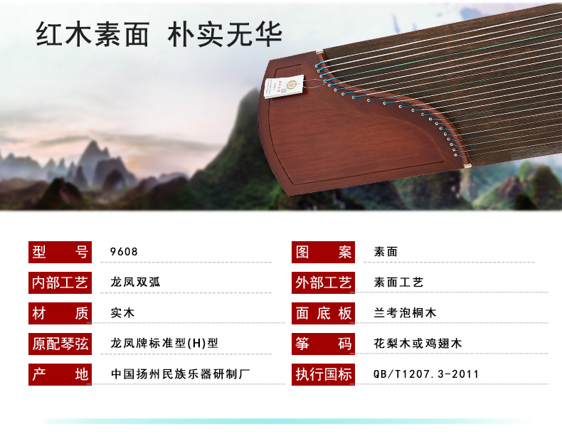 商品名称:龙凤古筝 9608红木素面 初学者入门扬州考级古筝琴
