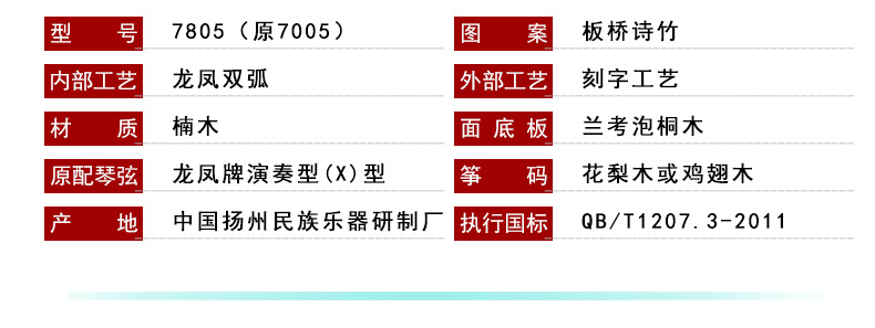 商品名称:龙凤品牌古筝7805楠木雕刻板桥诗竹双弧古筝乐器