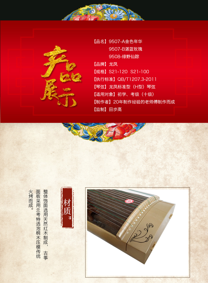 商品名称:龙凤古筝9507金色年华成人儿童迷你便携式小古筝21弦古筝琴