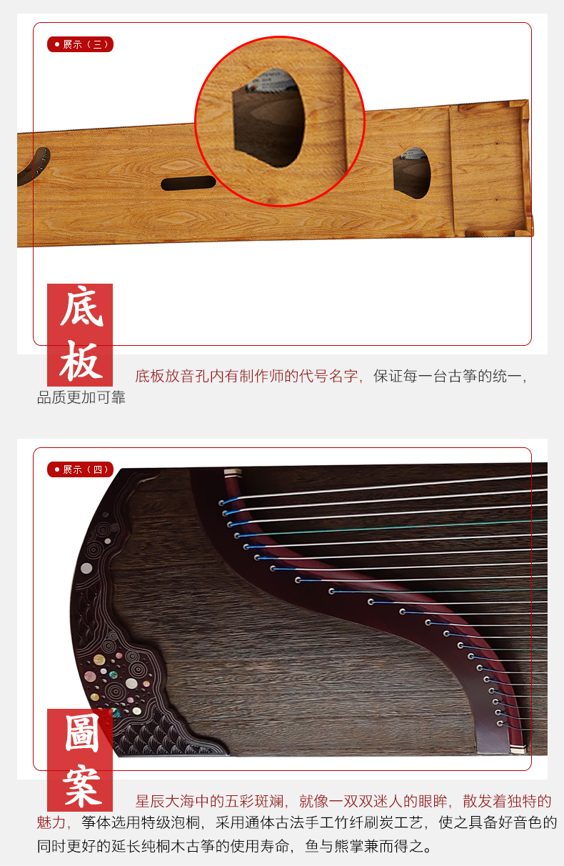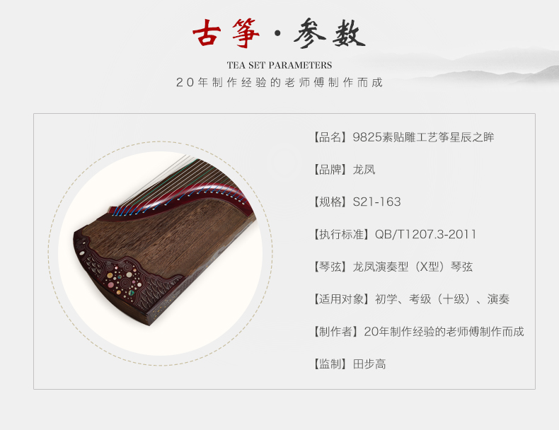 商品名称:龙凤古筝田泉系列9825素贴雕工艺筝 星辰之眸演奏级古筝