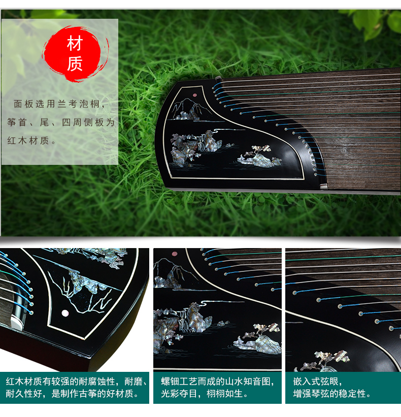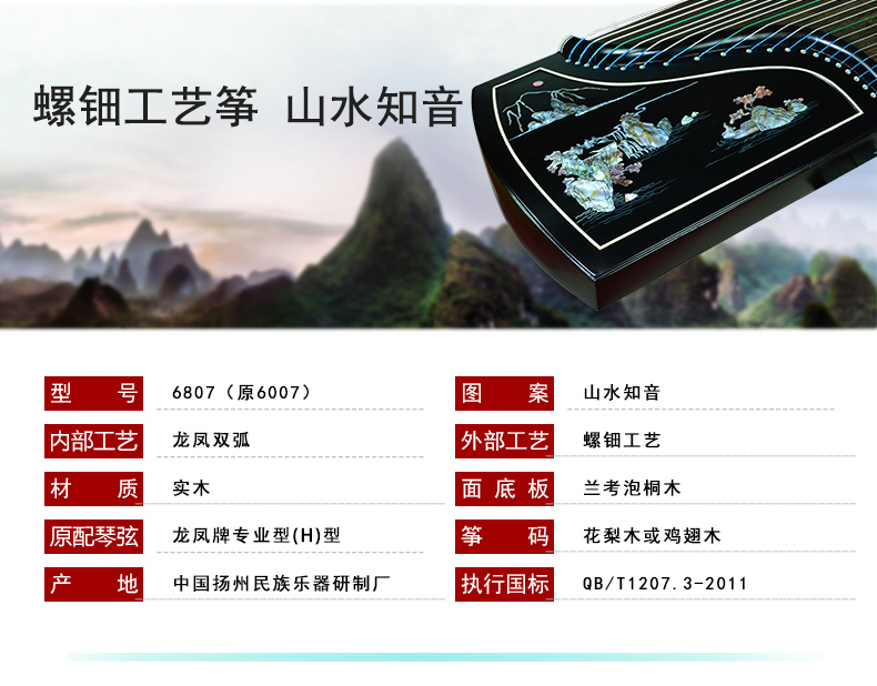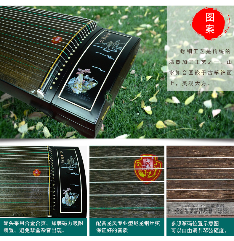 商品名称:龙凤品牌古筝厂家直销6807彩螺工艺筝山水知音古筝正品乐器